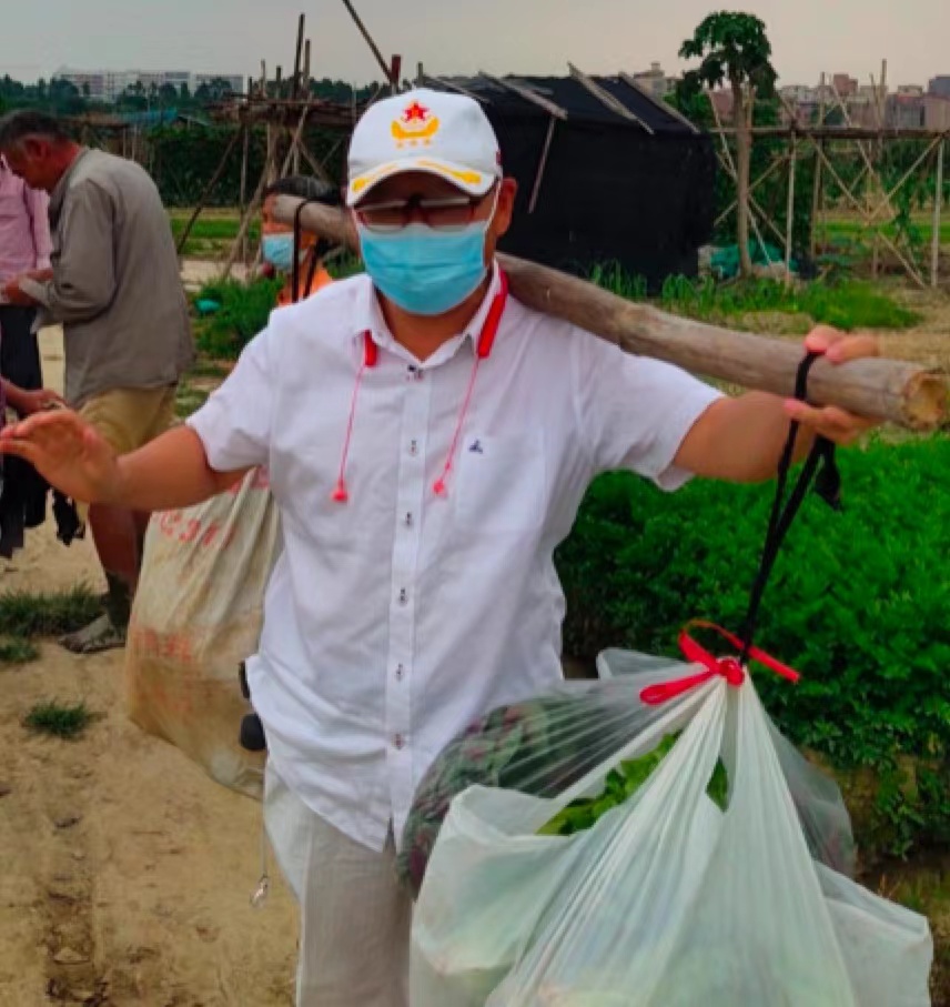 近期,每到傍晚时分,总有一个挑着扁担的身影,来回穿行在广东白云学院西校区与田野之间。这位挑着扁担的人,正是隔壁广州市白云工商技师学院的六旬教师傅世春。每天下班后,他就挑着扁担,徒步半小时,从菜地里挑着七八十斤蔬菜,化身疫情下的送菜人,给校内的教职工送上新鲜蔬菜。