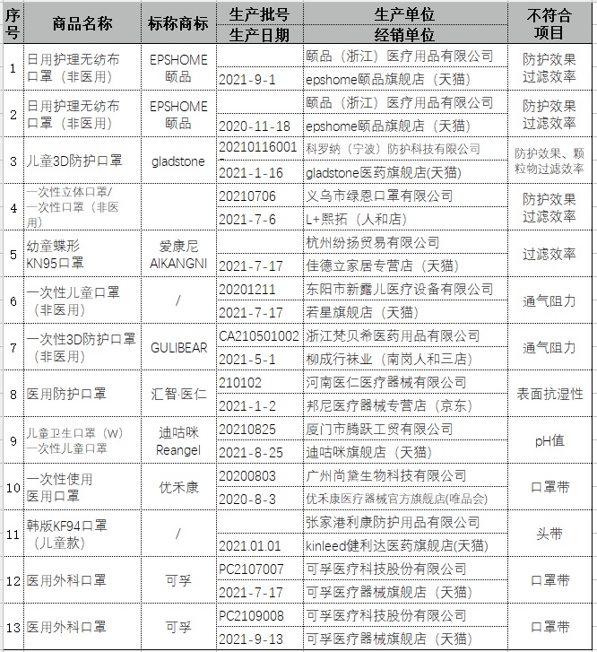 “可孚”等13款儿童口罩不达标