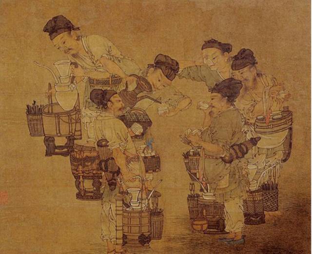 在中国,早在汉代,辽阳、望都等地墓室的壁画和画像石上,已经出现以风俗为创作题材的绘画作品,而中国真正意义上的风俗画则始于魏晋,兴于宋代。例如,这幅南宋时期的《斗浆图》(因无作者名款,常被称为《无名氏斗浆图》),展现的正是南宋时期的流行活动——斗茶。宋人爱茶,上至天子王公,下至黎民百姓都喜欢“斗一斗”茶。