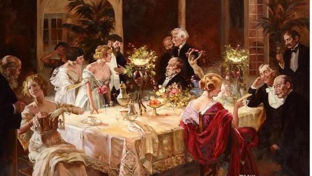 午餐作为有社交属性的正餐则被赋予了更强的仪式感。尤其在节日期间,人们会利用午餐时间进行社交和庆典活动。衣冠楚楚的绅士和盛装的女士们,在这里推杯换盏,交谈甚欢。