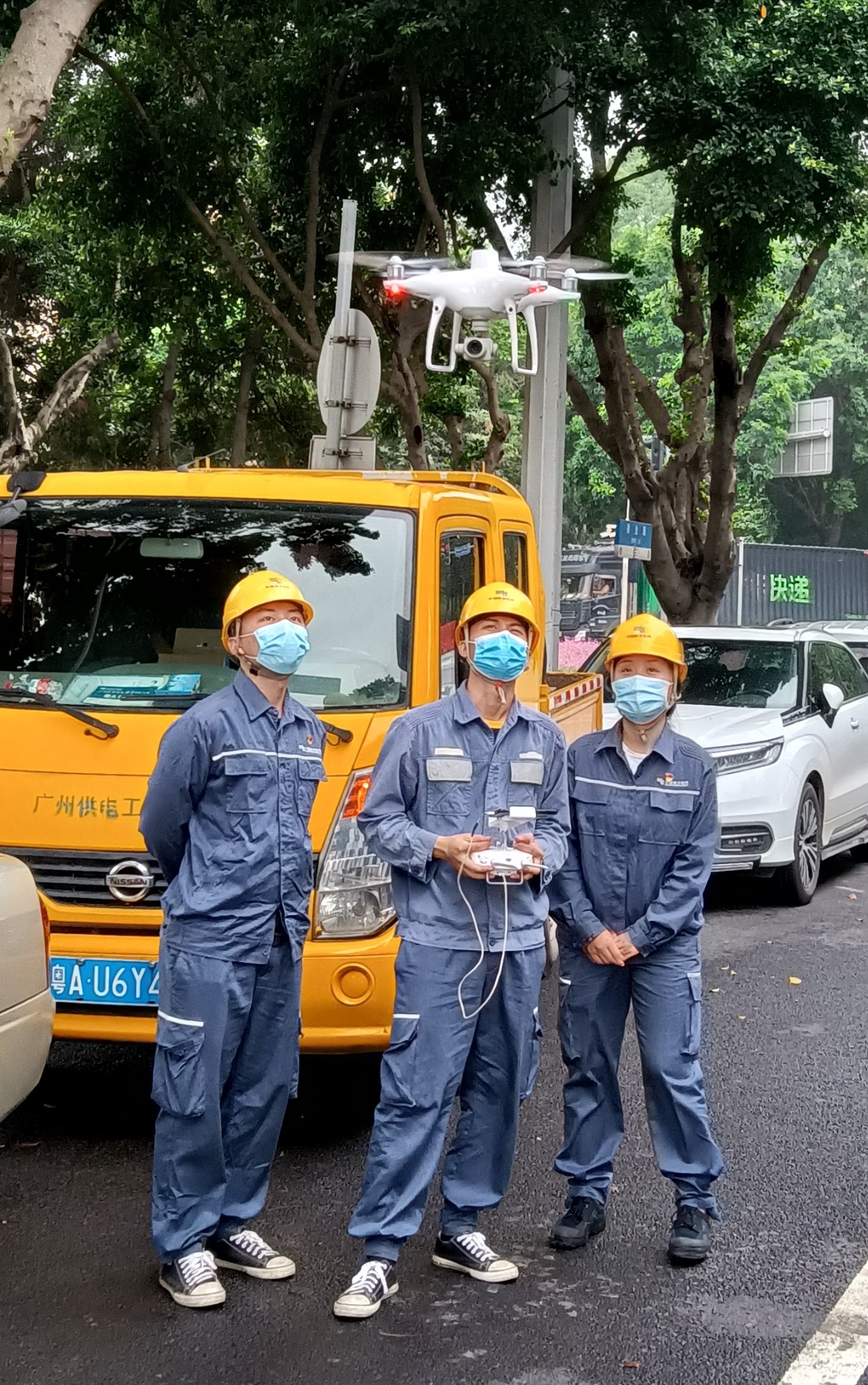 4月15日,广州黄埔供电局保供电人员葛佳菲和两位同事利用无人机自动巡航对黄埔区永和经济区环岭路附近的庙岭、新庄等10千伏线路进行特巡。
