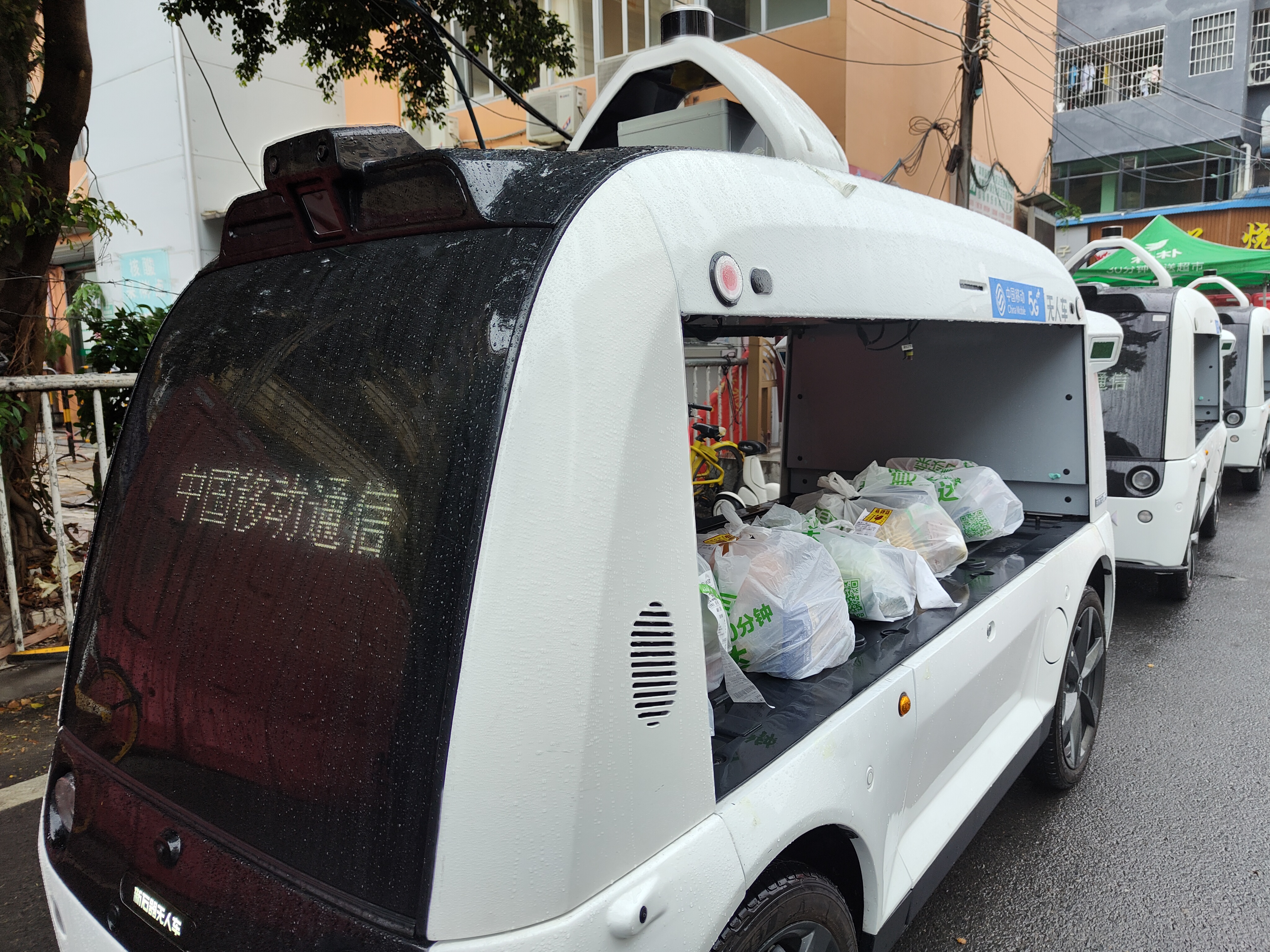 依托广东移动5G网络,5G无人配送车抵达后便迅速完成调测,投入使用。5G无人配送车配备了L4级自动驾驶系统、车联网AI平台及模块化智能货厢、丰富的传感器等,具备良好的自动驾驶能力。同时,它对天气要求极低,能保障在雾霾、中雨、夜间等环境下的正常无人自动驾驶配送活动,有效减少街道的人力投入,保障物资配送“最后一公里”。