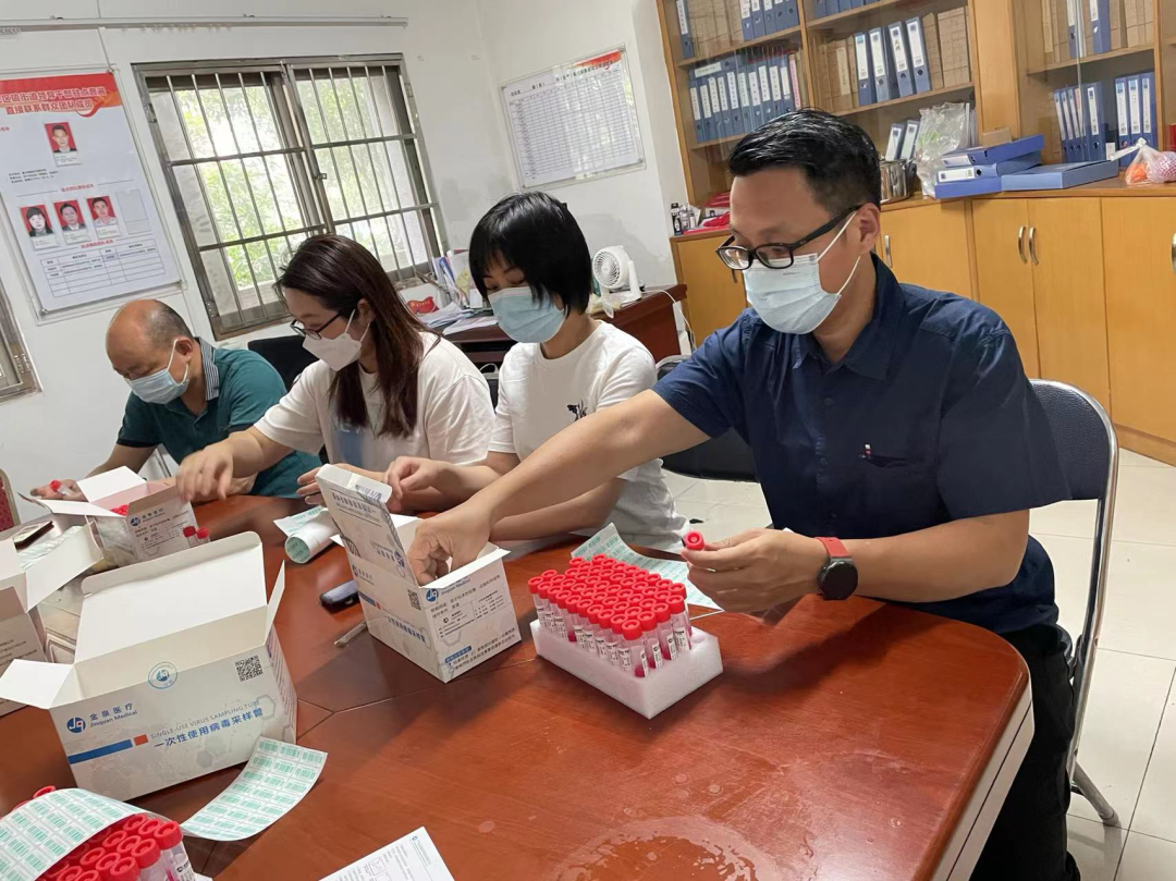 李民涌下沉的社区位于白云区,目前疫情防控形势较为复杂,封控区、管控区、防范区涉及面广,人口聚集,社区一线防疫防控工作非常繁重、琐碎。工号“001”的李民涌虽然在院里是带领百人规模队伍的“一把手”,但在社区防疫中,他又成了勇于担当,冲锋在前的普通“战士”。他拿出老文博工作者认真、专注、一丝不苟的精神,干好最细致基础的防控工作:分装抗原检测试剂盒、上门摸排疫苗接种和核酸检测情况、电话排查外地返穗人员、协助开展大规模核酸检测……