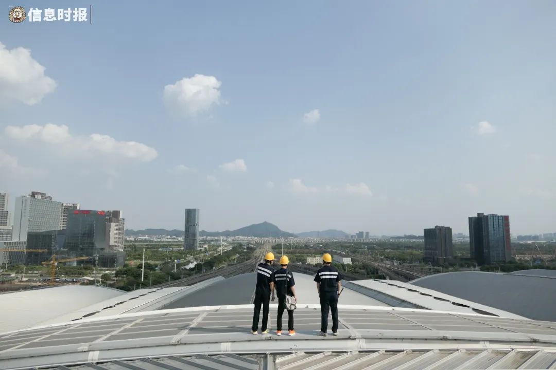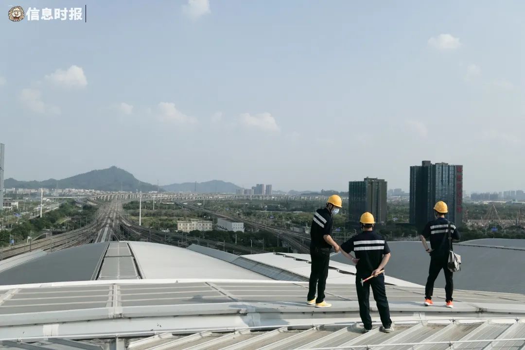 他们,来自广铁集团广州房建公寓段广州南高铁房建车间。近日,信息时报记者跟着该车间职工走上南站屋顶,体验了一把“云端”行走。