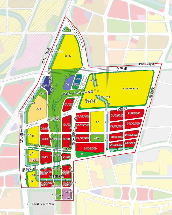 项目位于白云区嘉禾街,规划范围北至106 国道与空港大道交汇处,南至华英路,西至彭上德兴路,东至新顺路,面积174 公顷;涉及白云区AB2104、AB2107、AB2108、 AB2112 四个规划管理单元。嘉禾望岗地铁站是地铁2号线、3号线和14号线交会站,是广州市北部重要交通枢纽站,是白云区重点建设的城市综合体,也是广州推进地铁站点周边地区综合开发的试点站。随着地铁2号线、3号线、14号线和周边主干路网的逐步建成通车,嘉禾望岗片区迎来重大发展机遇。