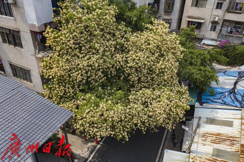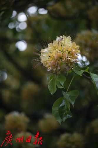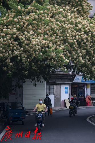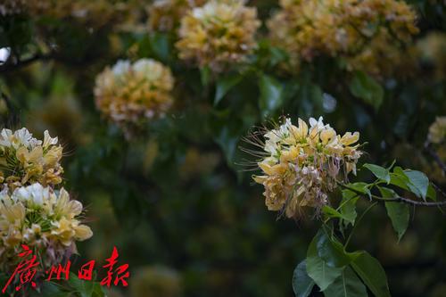 水荫一横路的一棵鱼木火了!近期广州的鱼木进入了盛花期,新港东路、宏城公园等地的鱼木纷纷繁花怒放。其中位于水荫一横路路边的一棵鱼木因树冠宽大,花开繁茂而吸引了不少市民游客前来打卡。鱼木是落叶乔木,开花时花比叶多,满树金黄,花瓣叶状,具明显的脉,初开时色彩淡绿黄色,后渐变淡黄色,最后淡紫,花期可长达一个月。