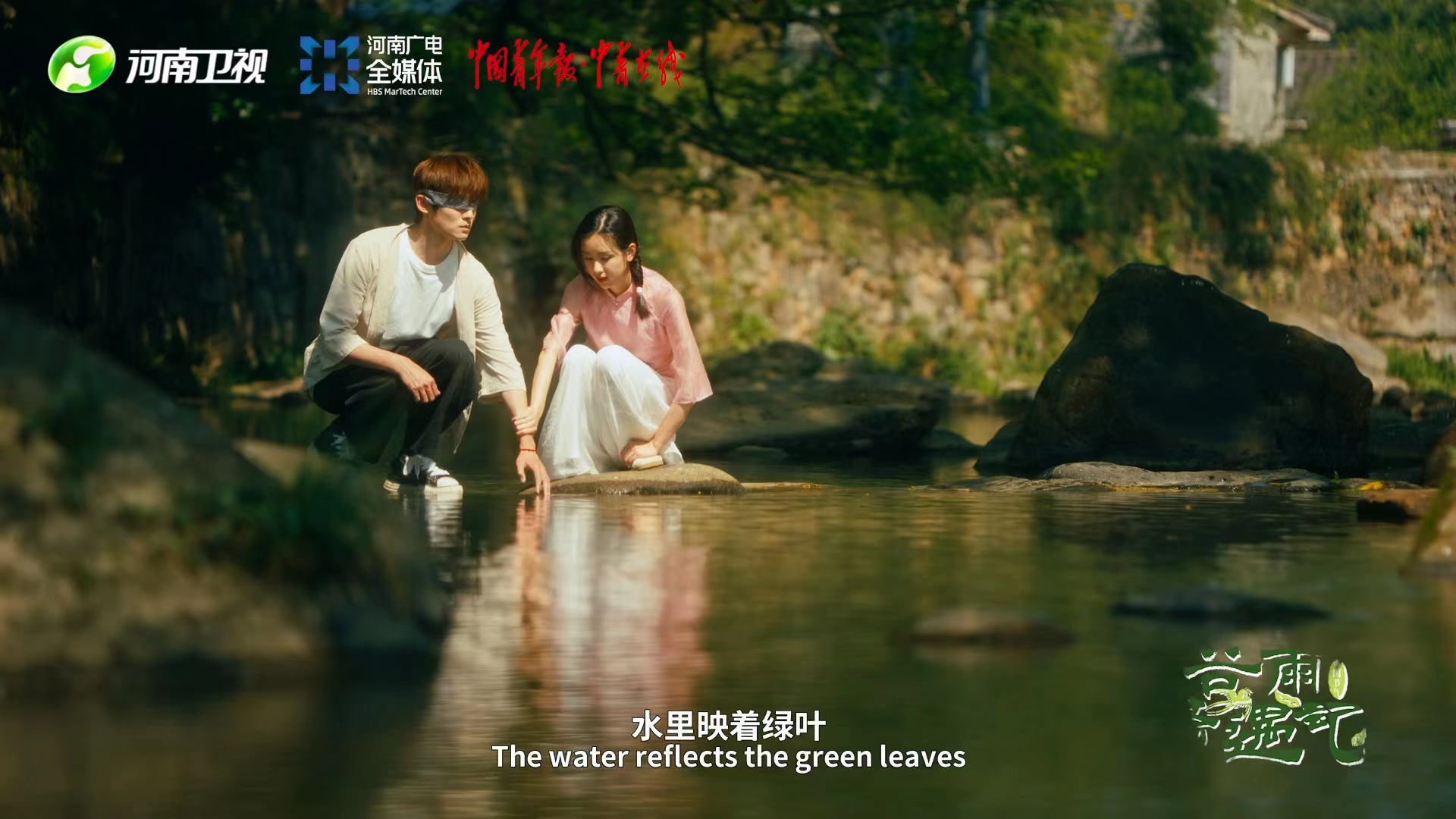 当陆雨和叶嘉坐在潺潺溪流边,灵动的背景音乐带来春日气息,随着情节推进,镜头切换,雨水滴落、鸭子戏水、映山红花开,从茶山风光、再到湖心茶岛,观众也从中领略暮春时节山村乡野的悠然自得。