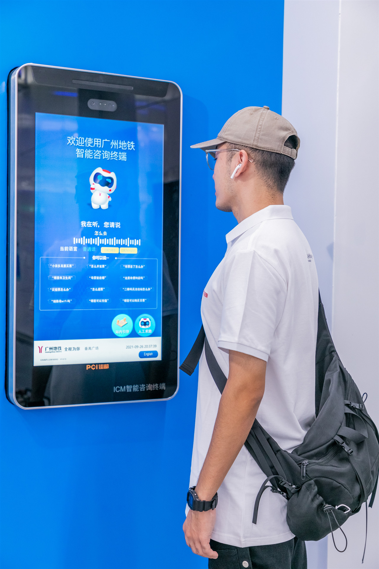 街坊们在广州地铁18号线、22号线首通段见到的全新“智慧车站”,来自广州佳都科技集团。站厅里的智能咨询大屏支持通过语音来提问和购票,大大方便了老年人群体。这里还有全国首个无人值守的智能客服中心,乘客可以方便地进行人脸注册、开具电子发票等,如果不明白,也可以与客服人员的远程音视频。进行人脸注册后,不到2秒就能刷脸过闸机了。