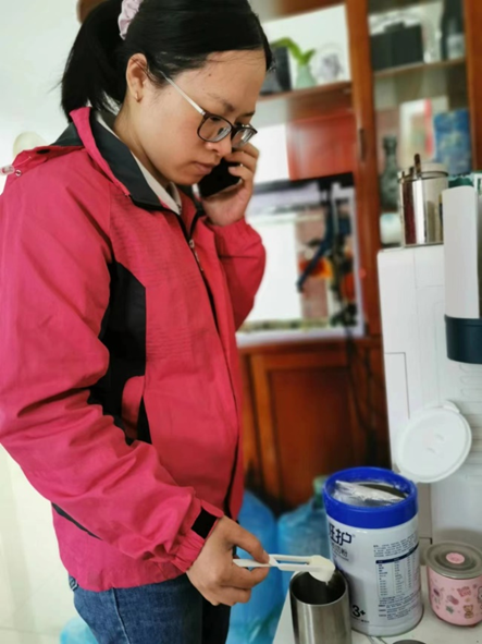 同样来自大塘街社区卫生服务中心的颜少娟医生要照顾年幼的孩子,自参加电话热线团队医疗保障工作,每天接听电话量大,时常一边冲着奶粉、一边接听电话,下达医嘱。