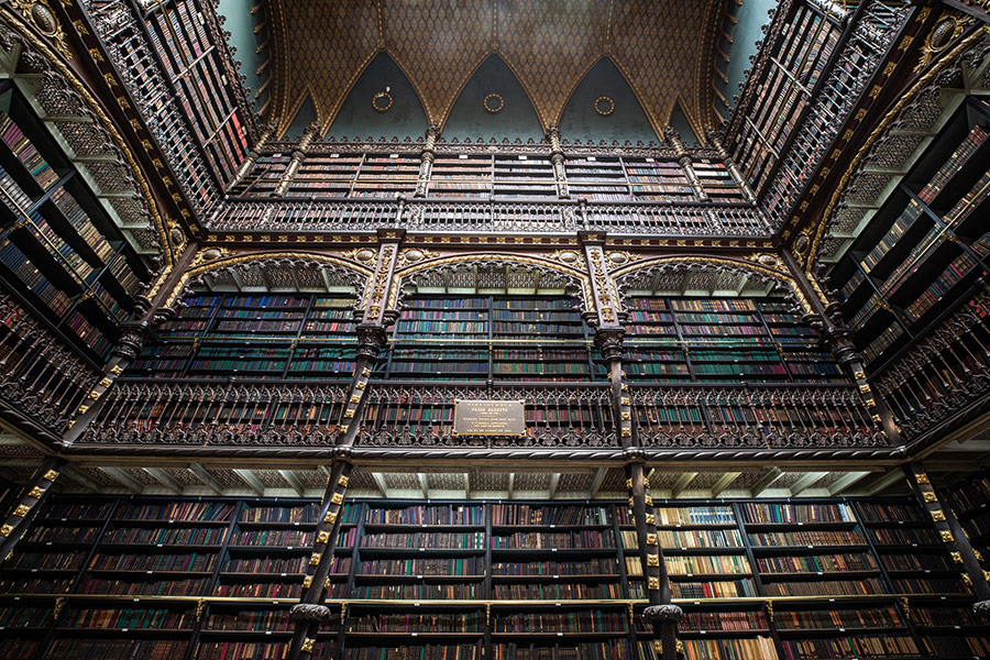 Located in the center of Rio de Janeiro, Brazil, the Royal Portuguese Cabinet of Reading is a library and cultural institution. It was built in the late 19th century under the stewardship of an association of Portuguese migrants.