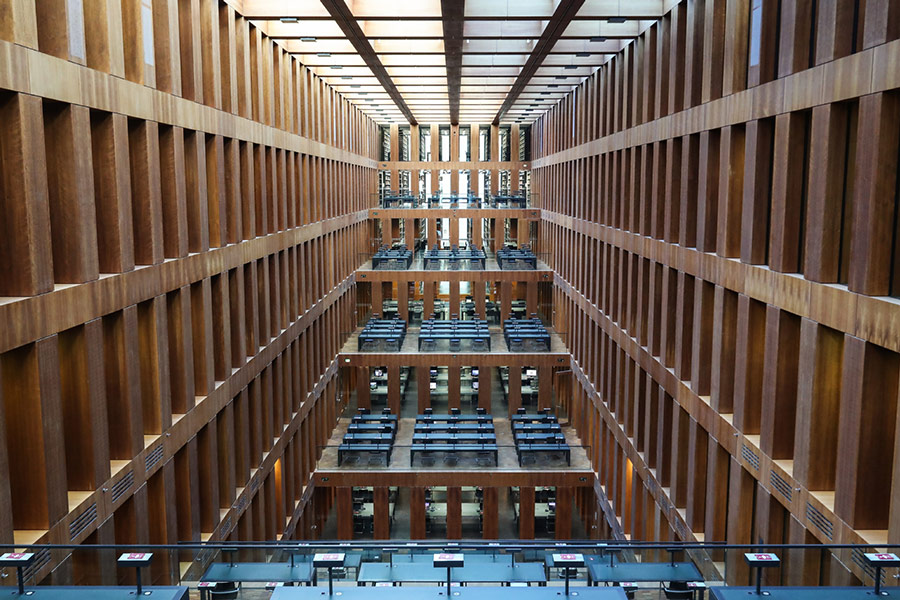 Interior view of the Jacob and Wilhelm Grimm Center, Berlin, Germany, taken on April 19, 2022. [Photo/Xinhua]