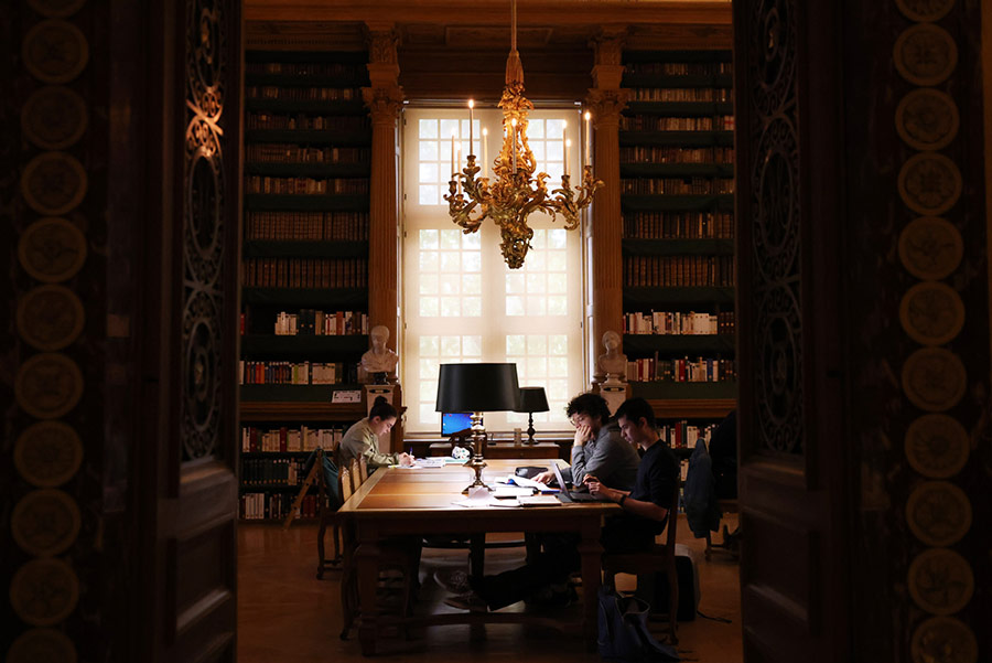 People read in the Mazarin Library, Paris, France, on April 20. [Photo/Xinhua]