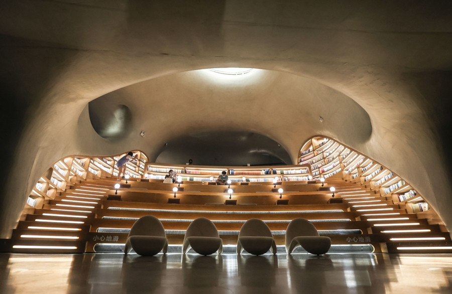 Located in Haikou, South China's Hainan province, the symbolic and artistic Wormhole Library provides the public with an ideal spot for reading and resting. It has a reading space that can hold around 10,000 books and has a multifunctional audio-visual area, as well as leisure areas such as cafes, baby care rooms, a common room and a rooftop garden.