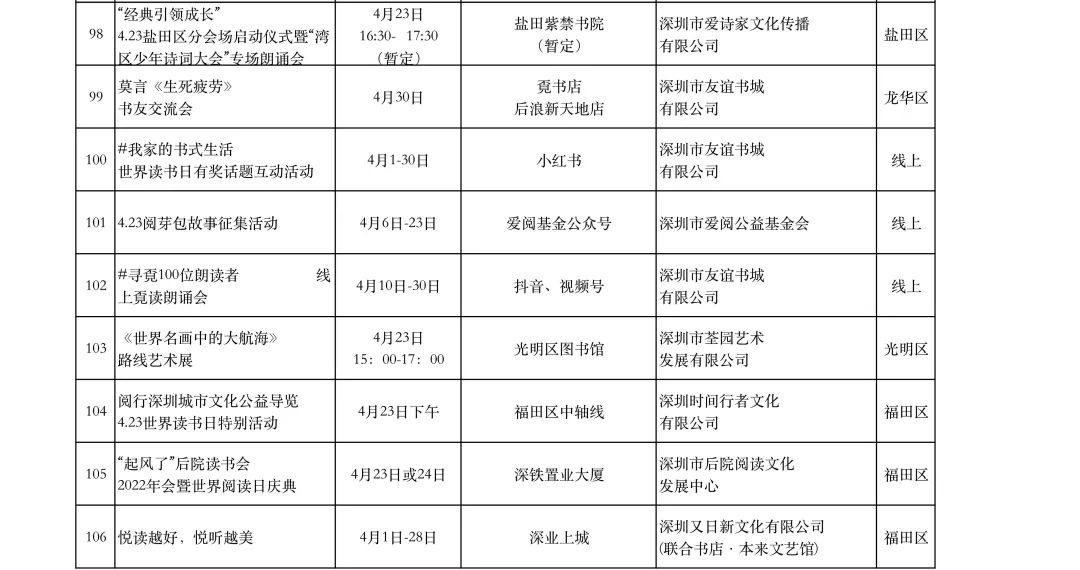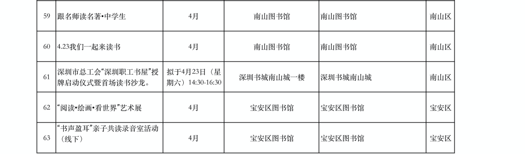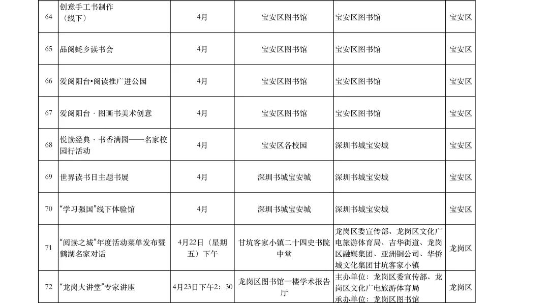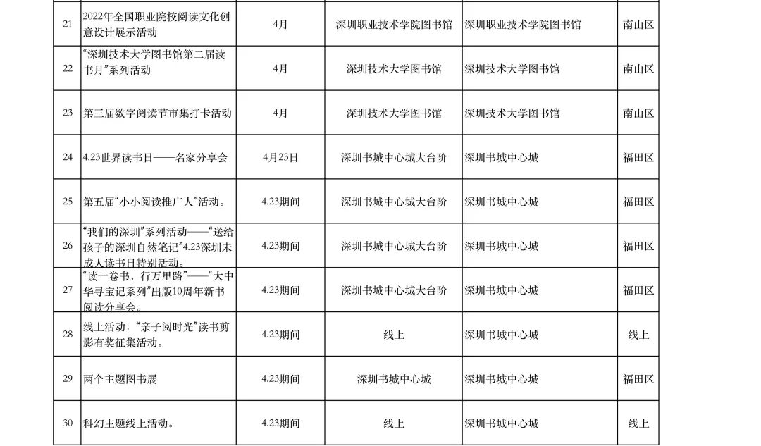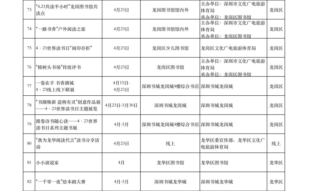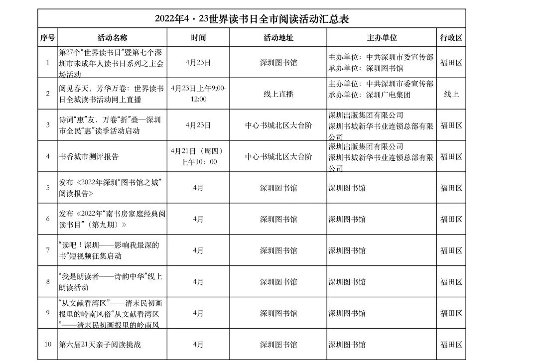 附:第27个世界读书日暨深圳市第7个未成年人读书日部分重点活动一览表