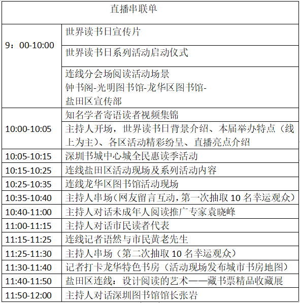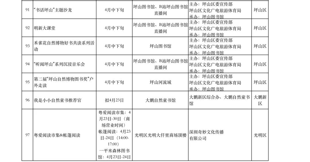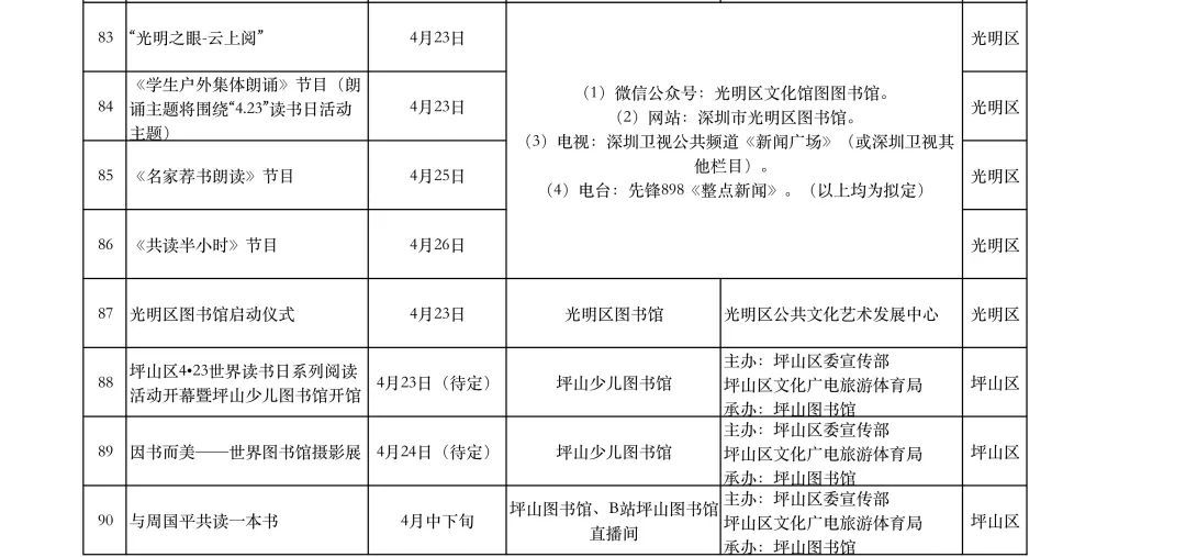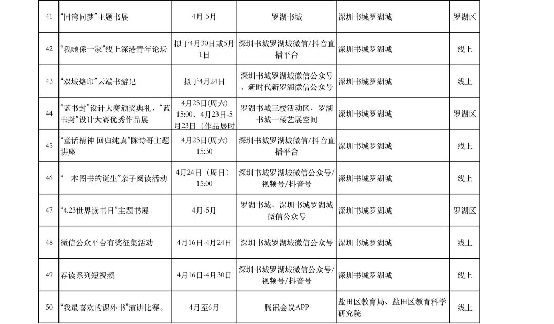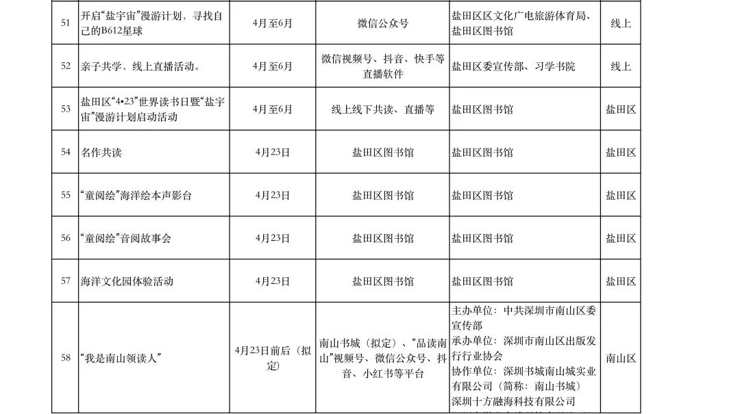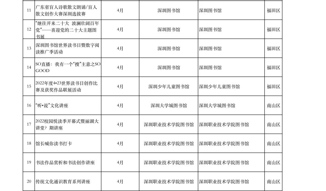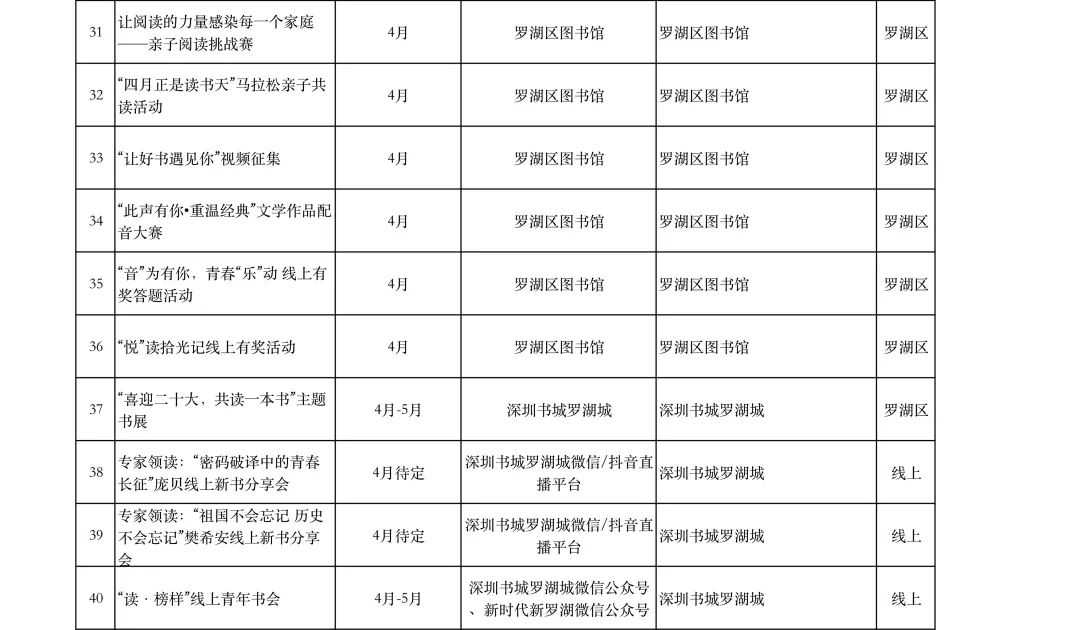附:第27个世界读书日暨深圳市第7个未成年人读书日部分重点活动一览表