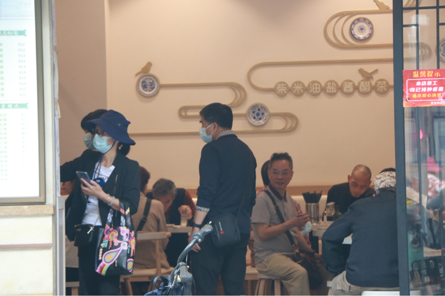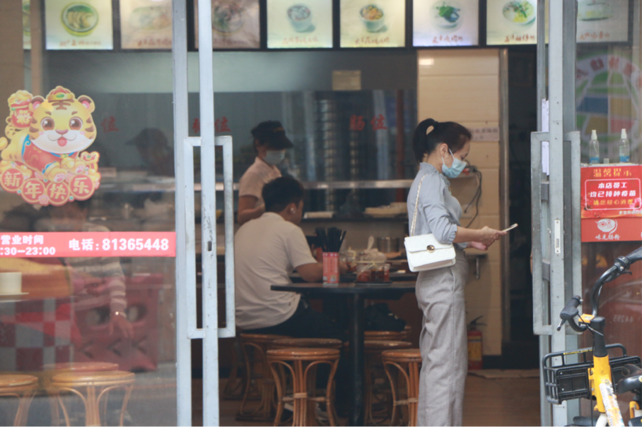 “我们这些老人家吃得不多,在家做一顿饭能剩不少,所以自己也懒得做。听邻居说恢复堂食了,我就赶紧叫上几个老友出来吃个饭‘吹下水’。”街坊陈叔说道。此外,市民邵先生则表示,自己今天正好来荔湾办事,发现这里恢复了堂食就顺道找个地方解决了午饭问题。除了直接堂食,也有不少街坊仍选择外带回家或是回单位就餐。市民陈小姐告诉小e,虽然恢复了堂食,但自己还是选择打包回单位吃饭,感觉这样更安心。