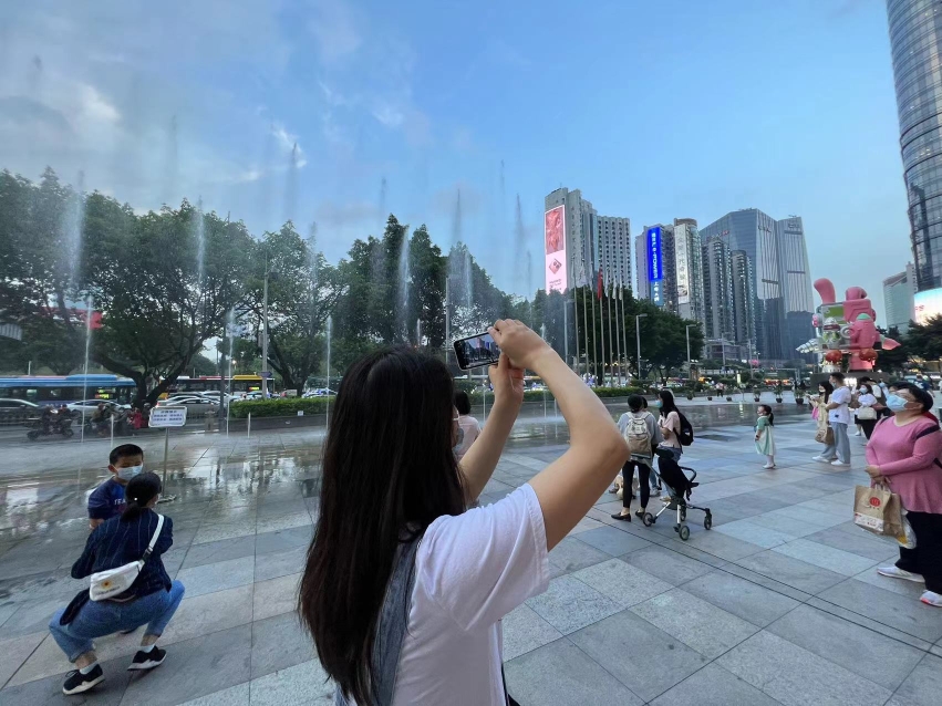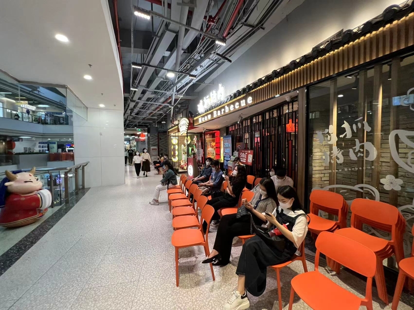 在正佳广场北门广场的音乐喷泉前,不少街坊驻足围观拍照,也有不少儿童嬉戏其间。在商场内,记者发现不少餐厅门口开始排起候餐队伍,由于今日天河区仍然要求“用餐人员不过半”,又正值周五下班,所以候餐时间相比以往要更长,前来用餐的市民也表示理解。