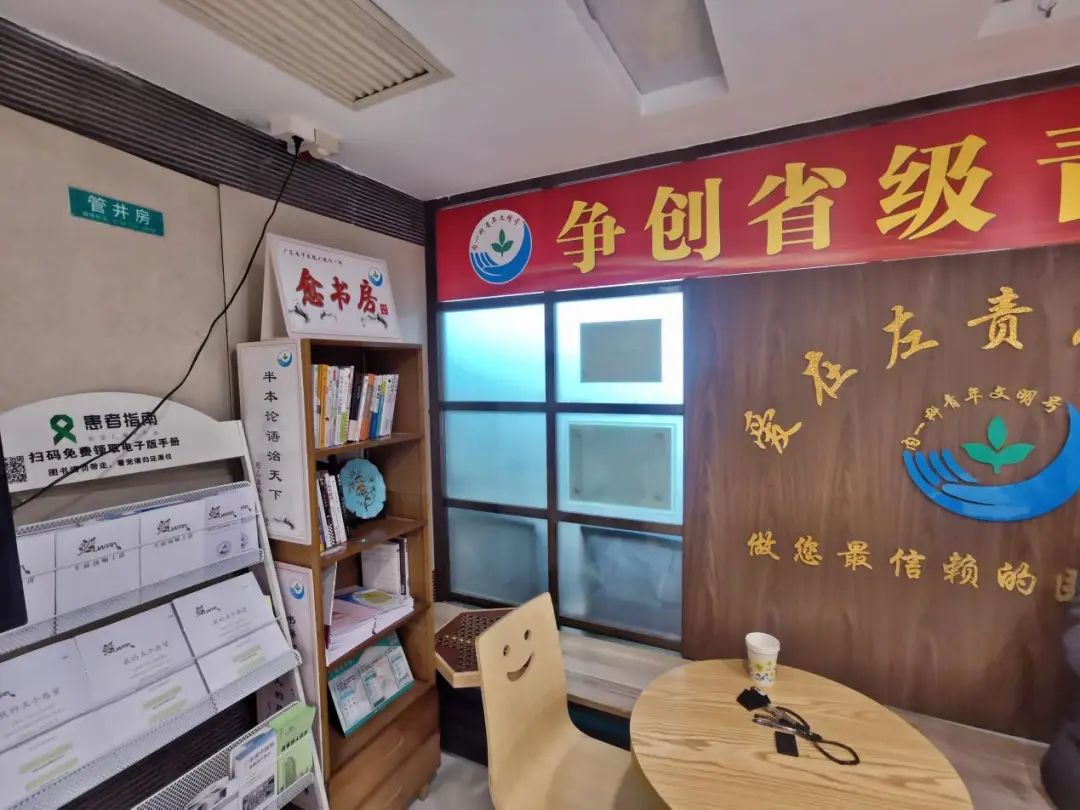 此外,医务社工与科室协作打造“能量加油站”,恒常提供助眠的耳塞、眼罩,防疫的口罩、免洗洗手液、酒精棉片等。在病人等候区设有“愈书房”一角,向患者及家属提供抗癌纪实、心理调适、肿瘤营养康复三类书籍的共享借阅服务。同时,医务社工借助相关宣传资料,为有需要的病人及家属传播安宁疗护知识。