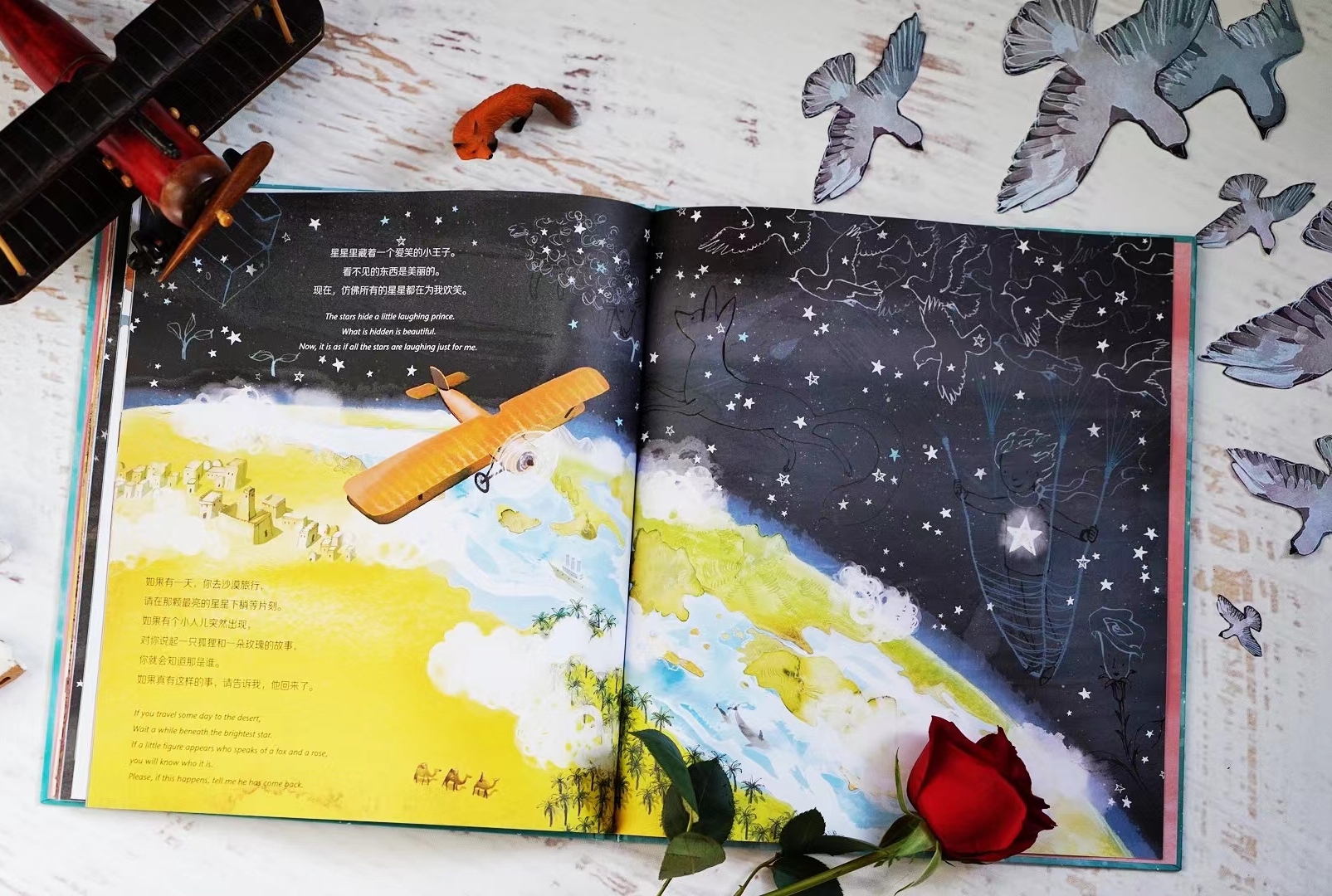 而这本中英双语版《小王子》绘本,则是给了孩子一个走进小王子世界的契机。温润灵动的绘本语言、动人心魄的梦幻插画、儿童本位的内容改编……它以一种孩子可感、可知的方式诠释出经典作品的魅力,为童年倾注了一份爱与美的滋养。