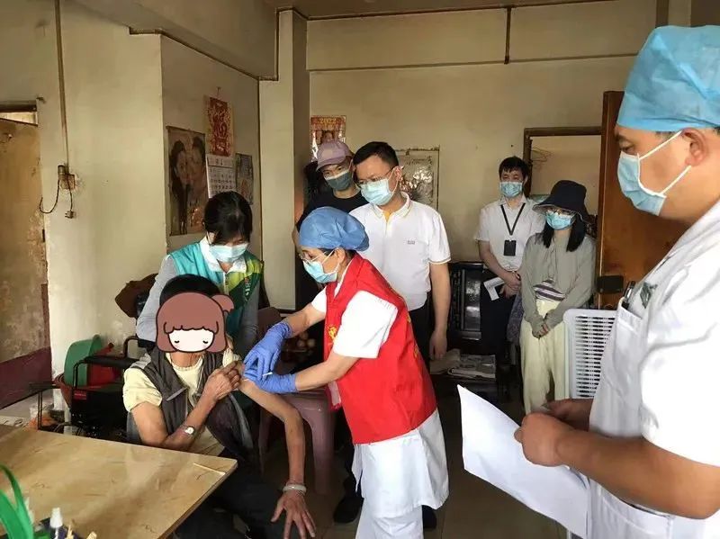 东沙社工站党员先锋队协助街道办事处、居委、社区卫生服务中心进行一系列疫苗接种服务工作,为社区中行动不便的长者等提供上门的疫苗接种服务。
