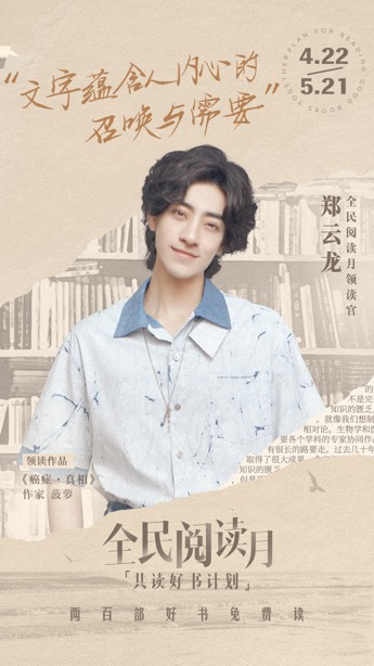 当红音乐剧演员郑云龙则关注到了当下社会发病率日趋上升的癌症,选择领读医疗科普书籍《癌症·真相》,提示大家探寻疾病本质,关注身体健康。