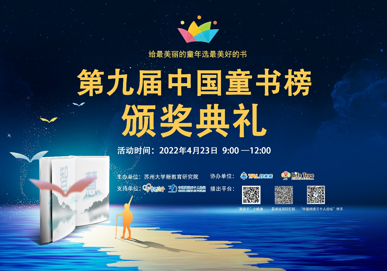 2022年4月23日上午,在第27个“世界读书日”当天,由苏州大学新教育研究院主办,中国少年儿童文化艺术基金会“新孩子”专项基金、韬奋基金会“中国阅读三十人论坛”专项基金支持,好未来公益基金会、生命树文化促进中心协办的第九届“中国童书榜”,在线上举办隆重颁奖典礼,揭晓2021年度“最佳童书奖”、“优秀童书奖”、“最佳编辑奖”评选结果,并发布2021年度“中国童书榜”百佳书单。