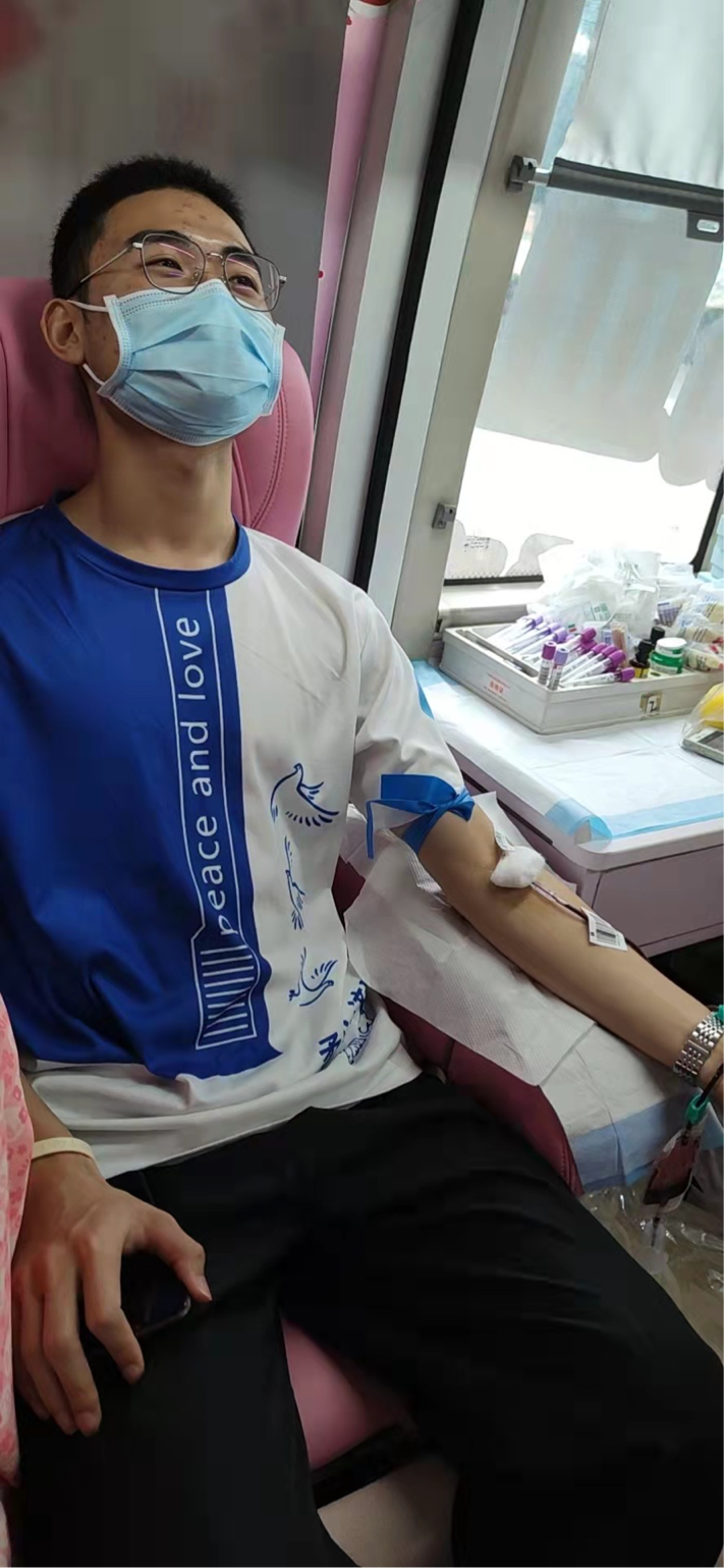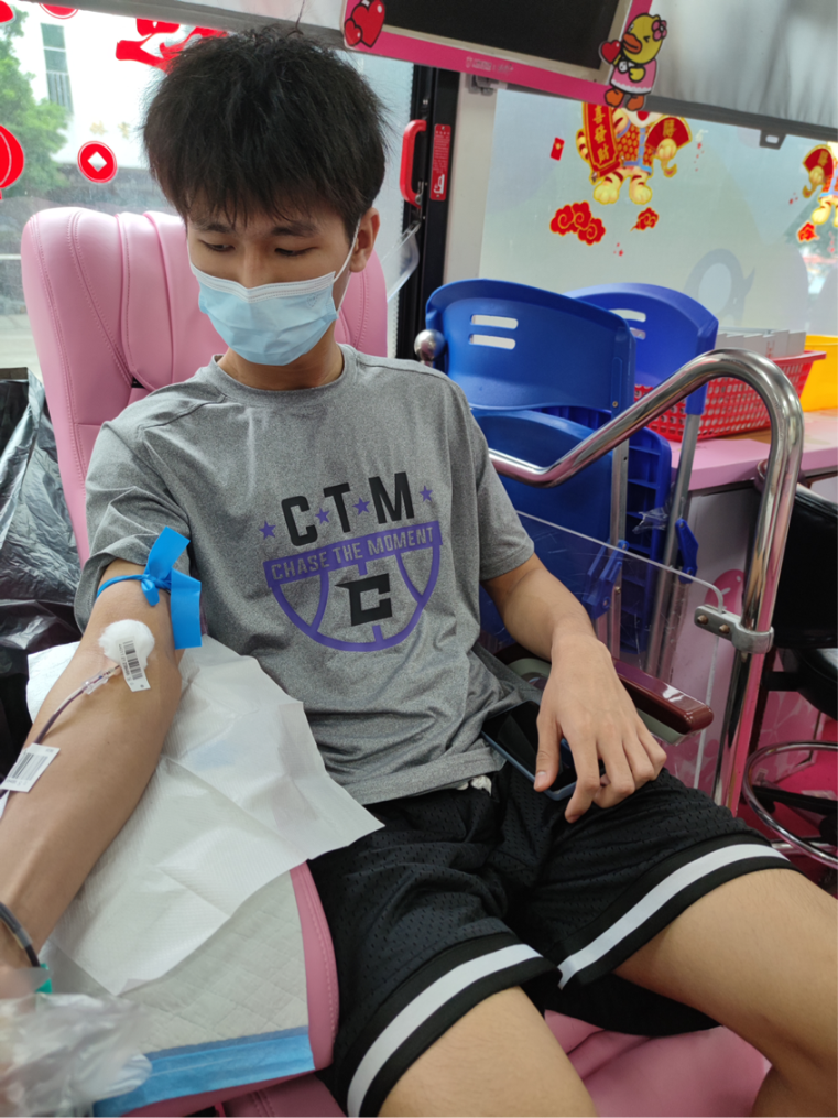 梁创嘉同学在献血。