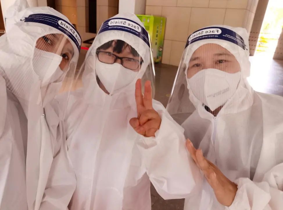烈日炎炎,社工、护士、康复师穿上了“大白”防护服。尽管衣服被汗水浸透,他们依然坚守岗位。