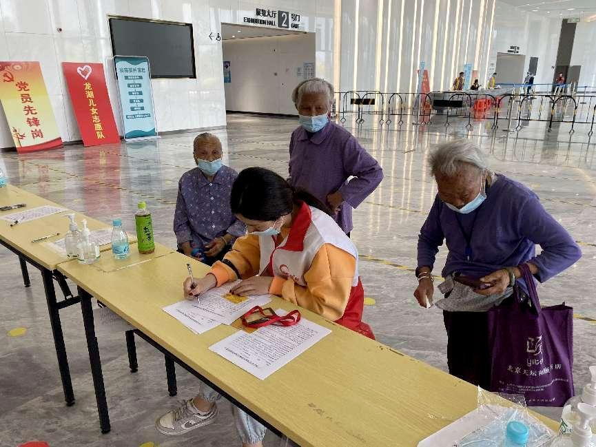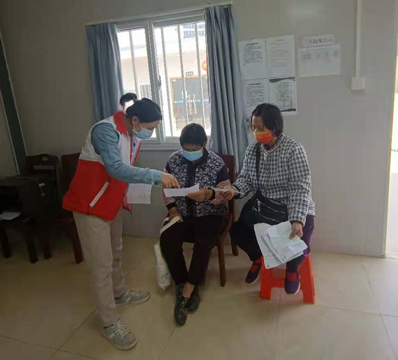 3月以来,龙湖街道分别在长者集中安置区、各社区/村颐康服务站布置便民疫苗接种点。龙湖街颐康中心的社工通过电话、微信或上门等方式,通知辖区老年人接种疫苗,并做好场地布置、现场秩序的维持、接种指引、指导长者填报信息等工作。