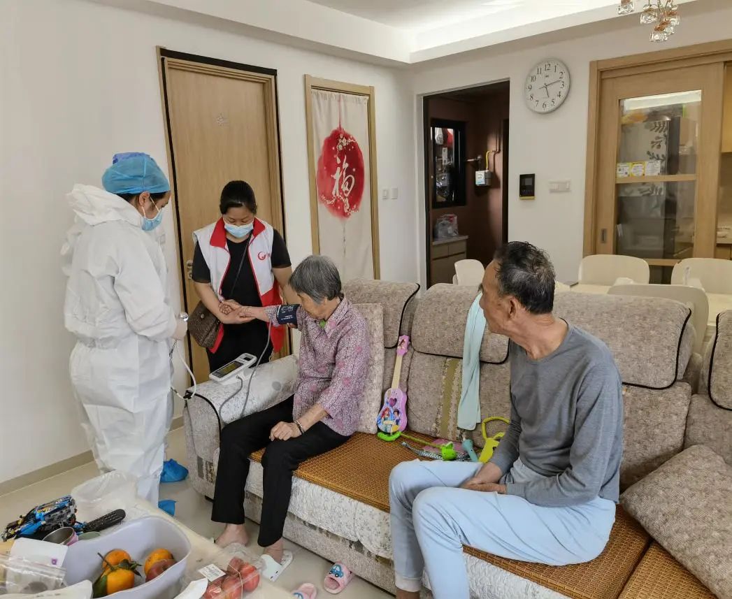 在龙湖街幸福誉社区,龙湖街颐康中心的社工主动协助医生,上门为行动不便的长者打疫苗。期间,社工全程陪同有需要的长者进行身体状况评估和疫苗接种。