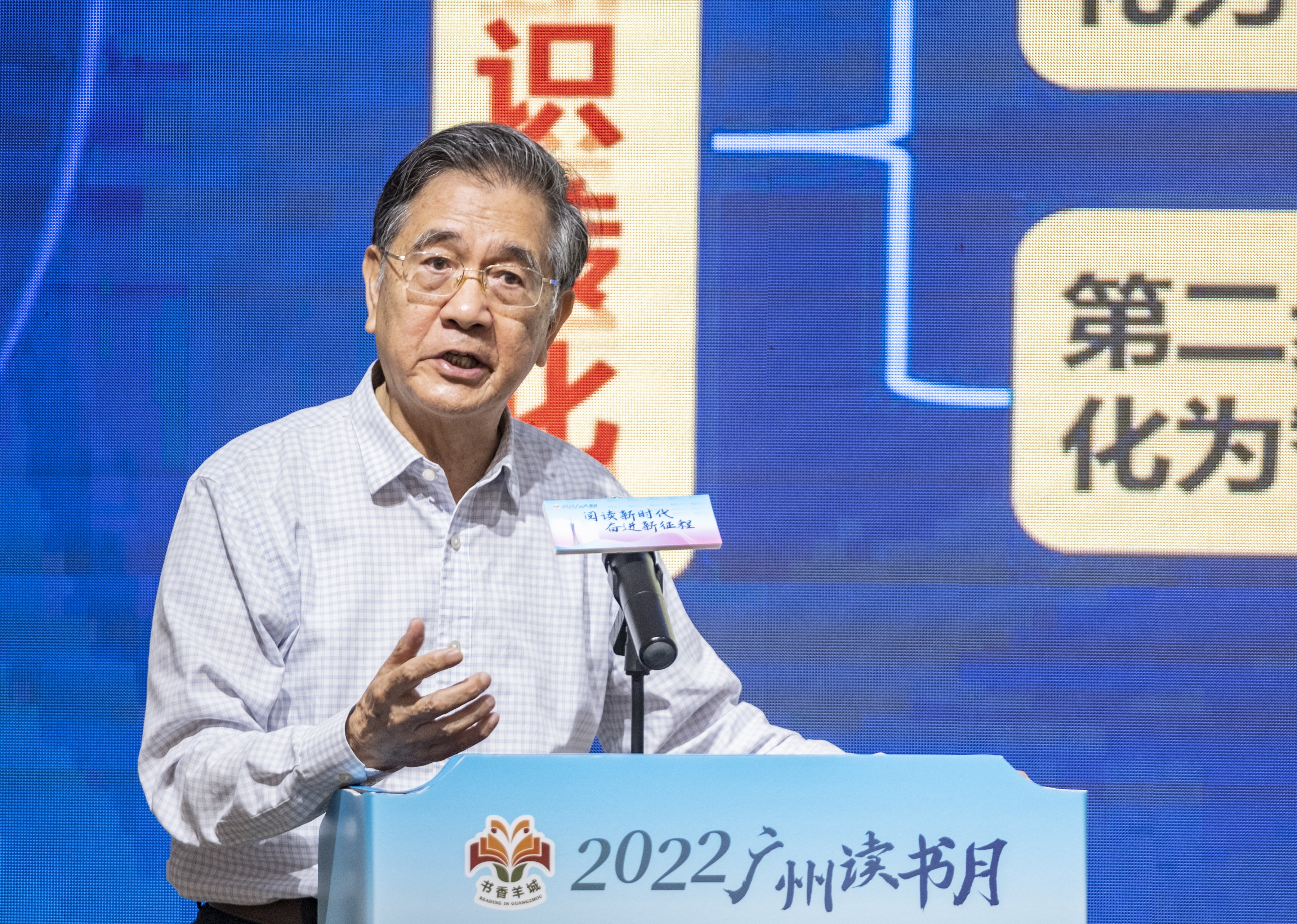 他号召大家凝心聚力,以“书香羊城”建设为龙头,通过全民阅读活动的蓬勃开展,点燃广州人的阅读激情,让更多人参与阅读、推动阅读、享受阅读,努力让每一个人都成为阅读者、朗读者,让每一户家庭都成为书香门第,共同建设书香浓郁的文化广州。