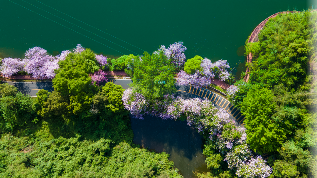 丹霞灵溪河公园内风光如画、四季常青,春夏时节百花吐艳、漫山锦绣,是郊游踏青的不二之选。