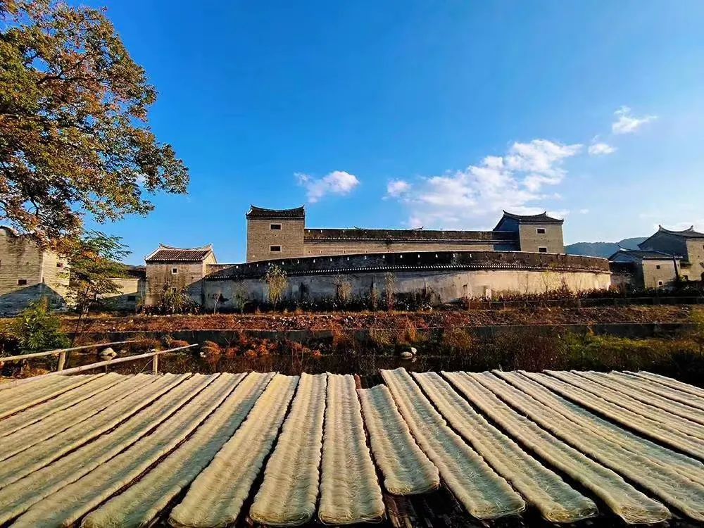 满堂客家大围位于始兴县隘子镇满堂村,整体规模宏大,楼内雕梁画栋,一砖一瓦,承载着客家人的悠悠岁月,记录着客家人的伟大智慧。来到隘子镇,一定要来参观非遗传统工艺宰相粉的制作工厂,还可以品尝这份米粉。古往今来,宰相粉是始兴人民智慧的体现,它既展示了粤北劳动人民手工制作美食特产的传统工艺,又演绎了岭南地区的饮食习惯和消费习俗,具有独特的文化内涵。