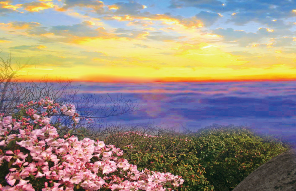 当前正值春夏交际,丹霞山上盛开着柑橘柚花、桃花、石斛花,路边绽放着杜鹃和金丝桃,这些争奇斗艳的繁花,像是要抢着给踏春游客证明,自己才配得上是这明媚春天里的“东风第一枝”。