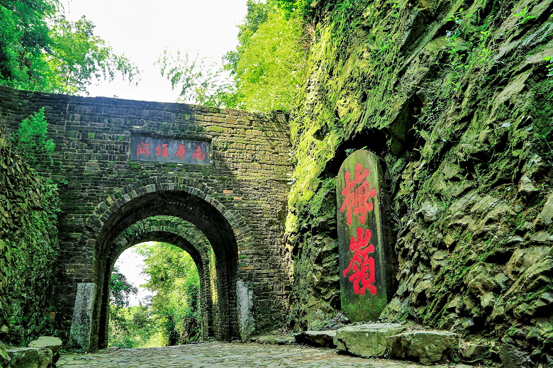 梅关古道此时如绿野仙踪般,整条道上铺满了绿绿的小草,如一条天然的嫩绿色地毯顺着古道蜿蜒而上,鹅卵石和小草错杂其中,像是仙境里的小精灵一样,让人忍不住顺延而上,一探秘境。