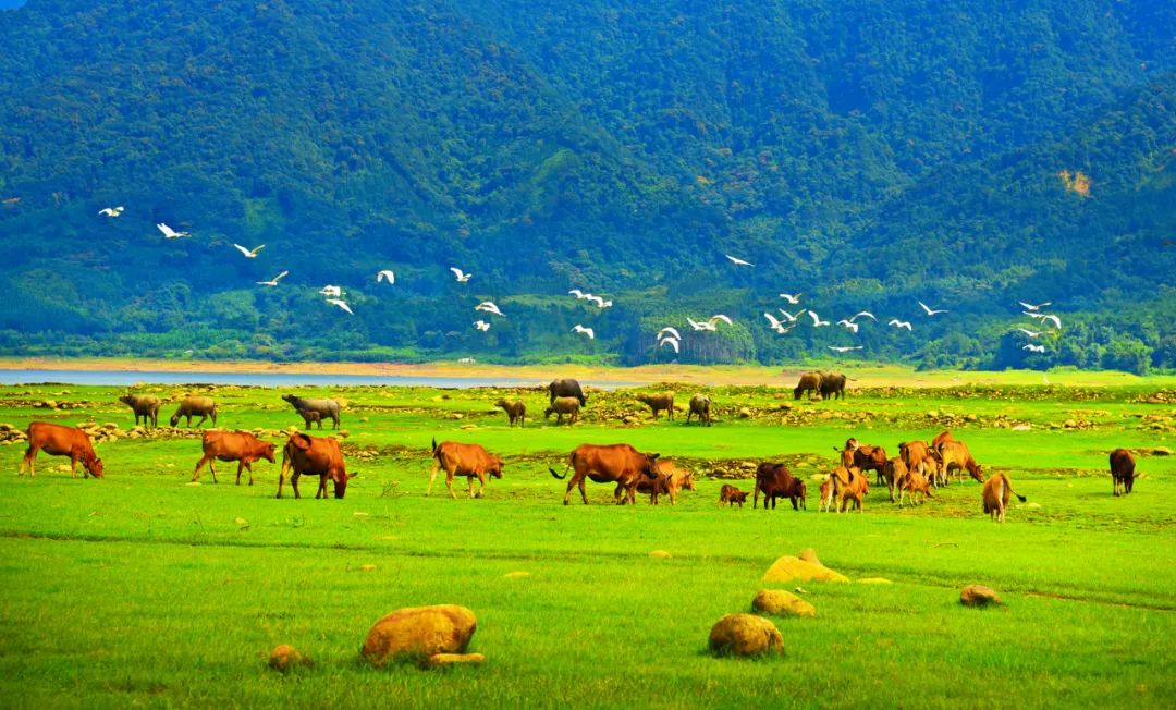 罗坑大草原可谓是一个宝藏踏青地,春天一来,草坪就开始一片嫩绿,远处有高山湖泊,近处能野餐、放风筝。