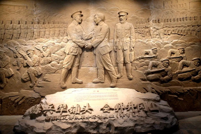犁市当铺(旧称犁铺头),一个原本名不见经传的“弹丸之地”,谁曾想,历史却将它推向革命浪潮中,浓墨重彩书写出中国红色书卷光辉的篇章。犁铺头是朱德游击战思想的形成地和朱毛部队井冈山会师的酝酿地,其在中国革命中具有重要的历史地位和巨大作用。忆往昔峥嵘岁月稠。记者走进浈江博物馆犁市当铺主展厅,“练兵犁铺头会师井冈山”几个厚重大字映入眼帘,红色记忆的闸门瞬时打开,一段风起云涌的革命岁月再现眼前。