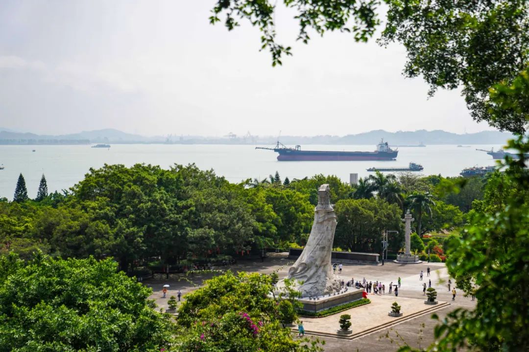 巡游船从巩固台出发,前往南沙天后宫岸边行鸣笛礼,随后一路航行至上横档岛,在岛上的天后宫遗址旁举行海巡祭拜仪式。