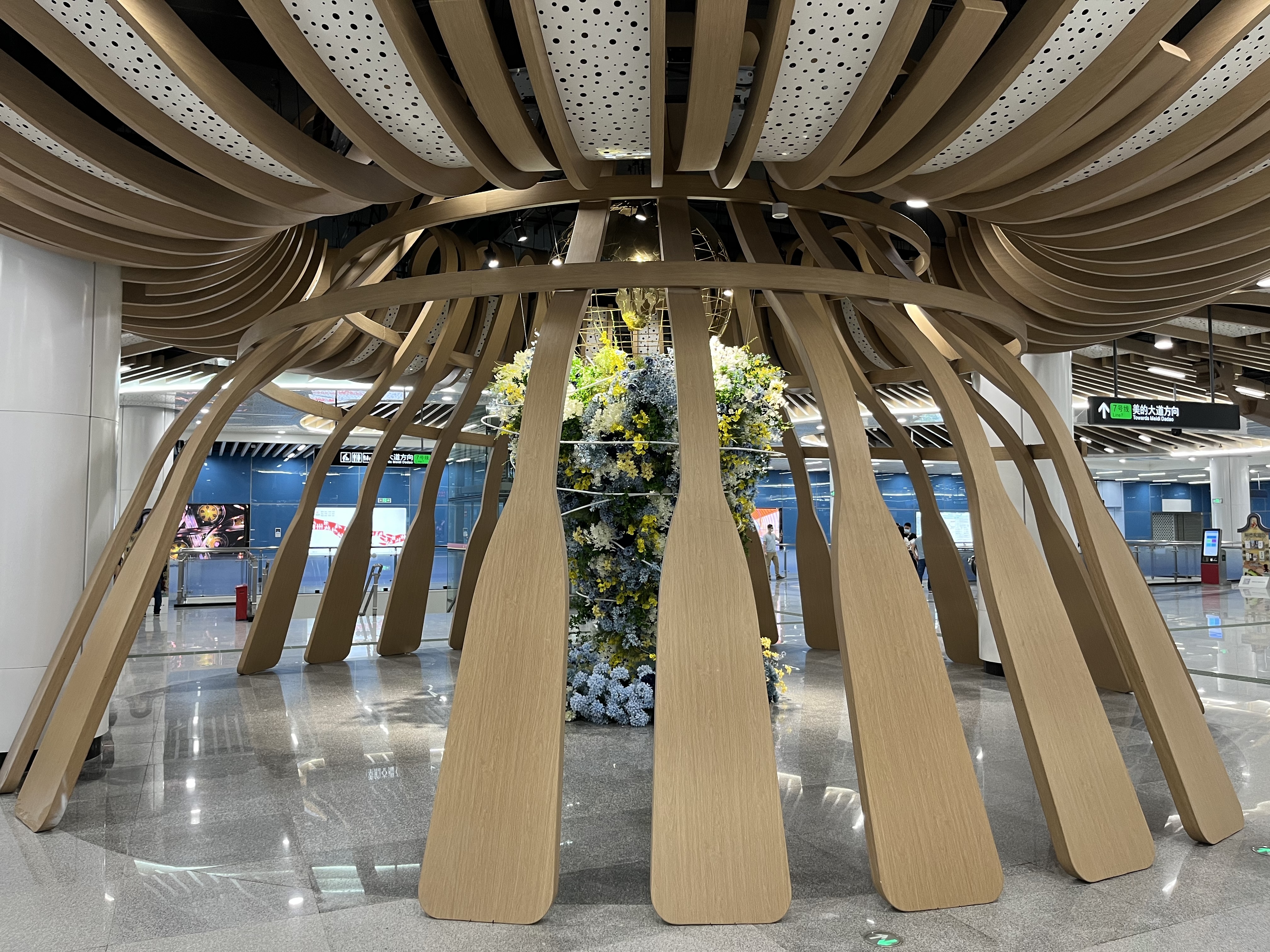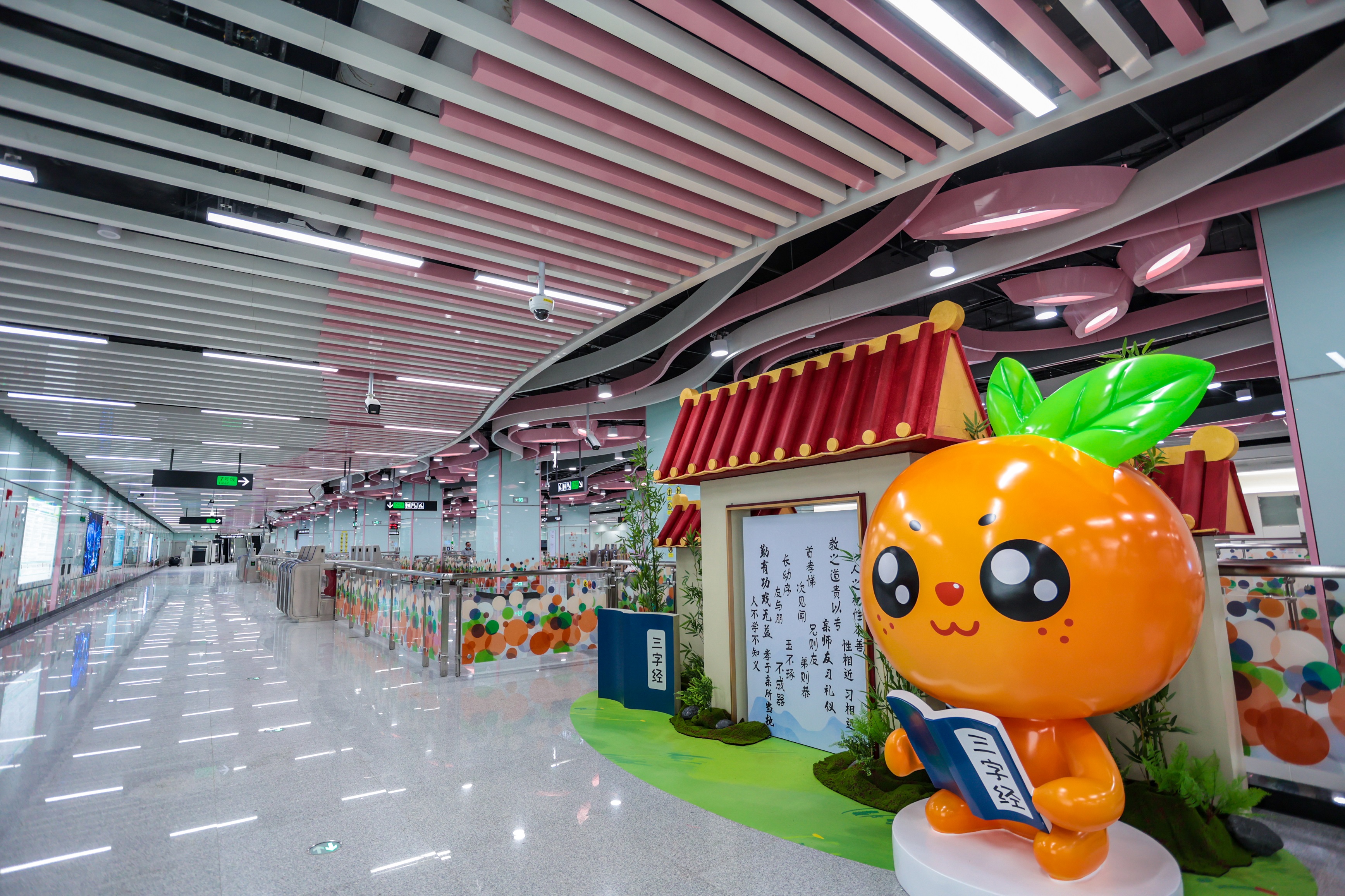 记者在试乘过程中看到,陈村站植入了兰花和三字经的元素,通过把兰花柔美的曲线和三字经文字运用到公共空间设计中,既有历史文化内容又有时代生活气息。而北滘公园站则以水、龙舟为载体,以“全球视野、百滘峥嵘”展示龙舟竞渡精神传承和发展,寓意北滘人民在龙舟竞赛中奋勇拼搏的精神。