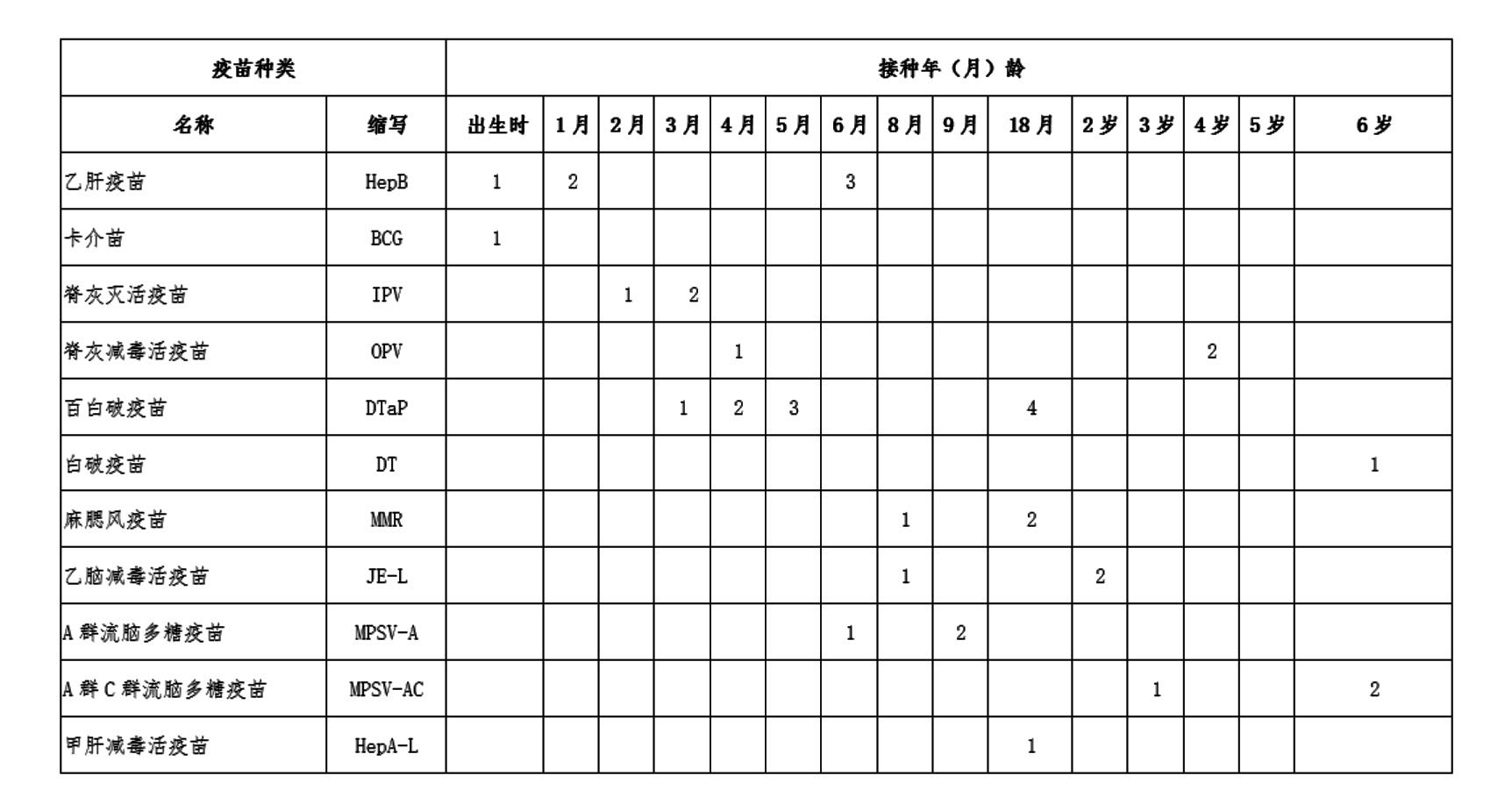 广东国家免疫规划疫苗儿童接种程序表