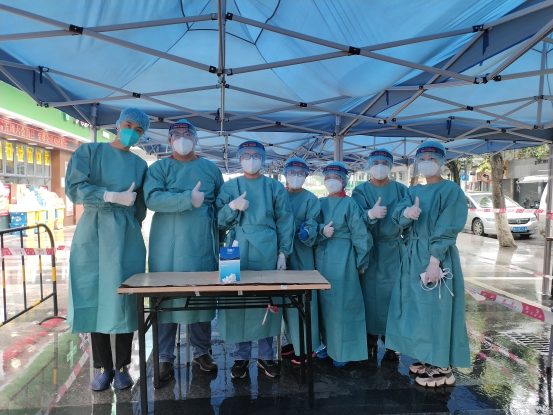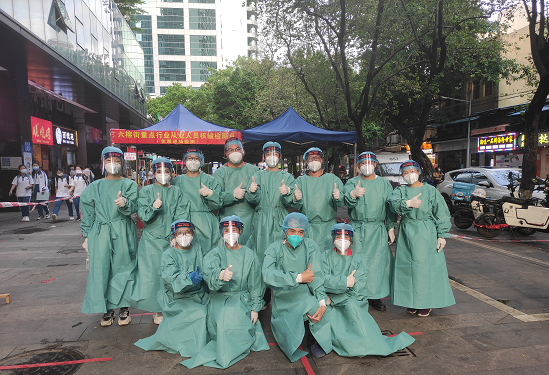 社区党员、志愿者们协助六榕街开展核酸检测、上门排查、宣传疫情防控和疫苗接种知识等工作,在检测点与居民楼间来回奔波,从白天到黑夜,守护着辖内居民的生命健康安全。