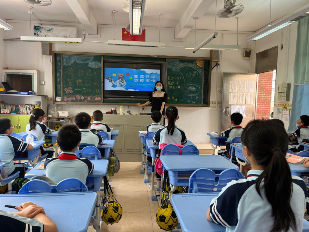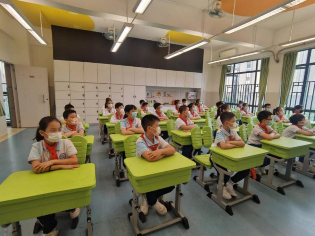 第一课,西关培正小学为同学们准备了各具特色的课程,恩宁校区的班会课上,同学们以元气满满的武术操迎接返校第一天。凯粤湾校区则开展了防疫课堂,与同学们一起重温学习防疫的小知识。