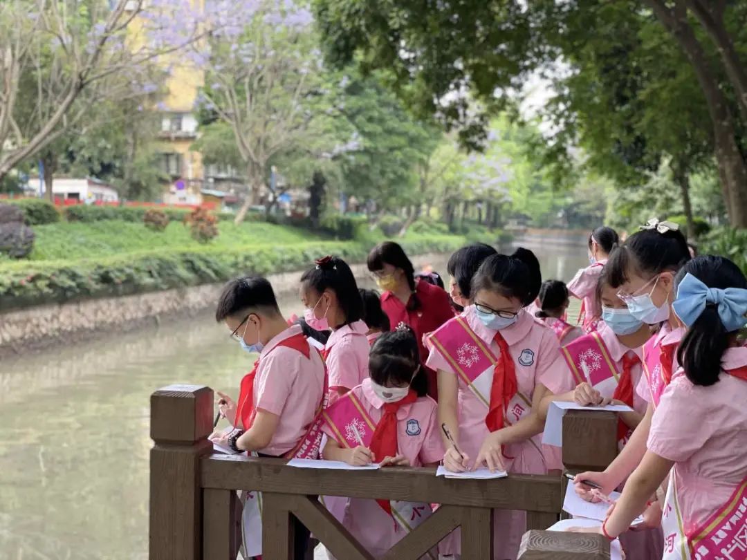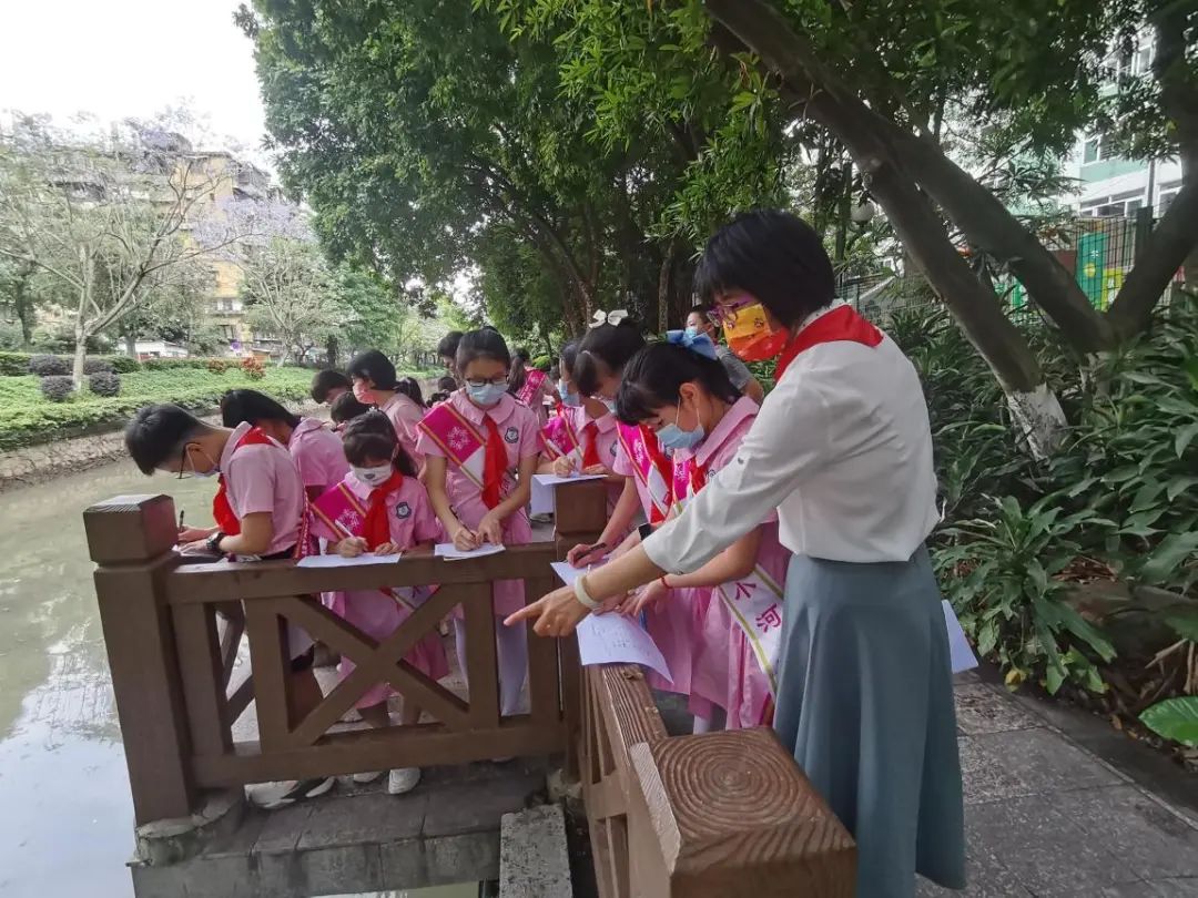 在党员老师的带领下,小河长们一起巡查驷马涌,继续为驷马涌建档立卡。