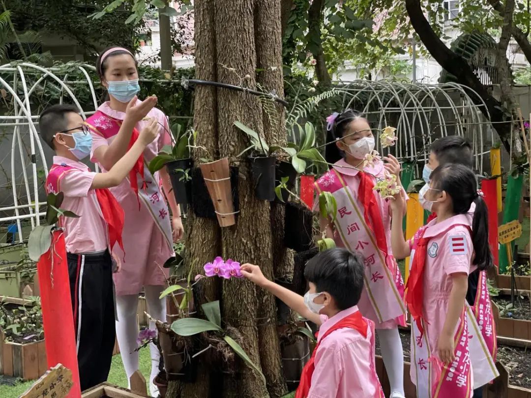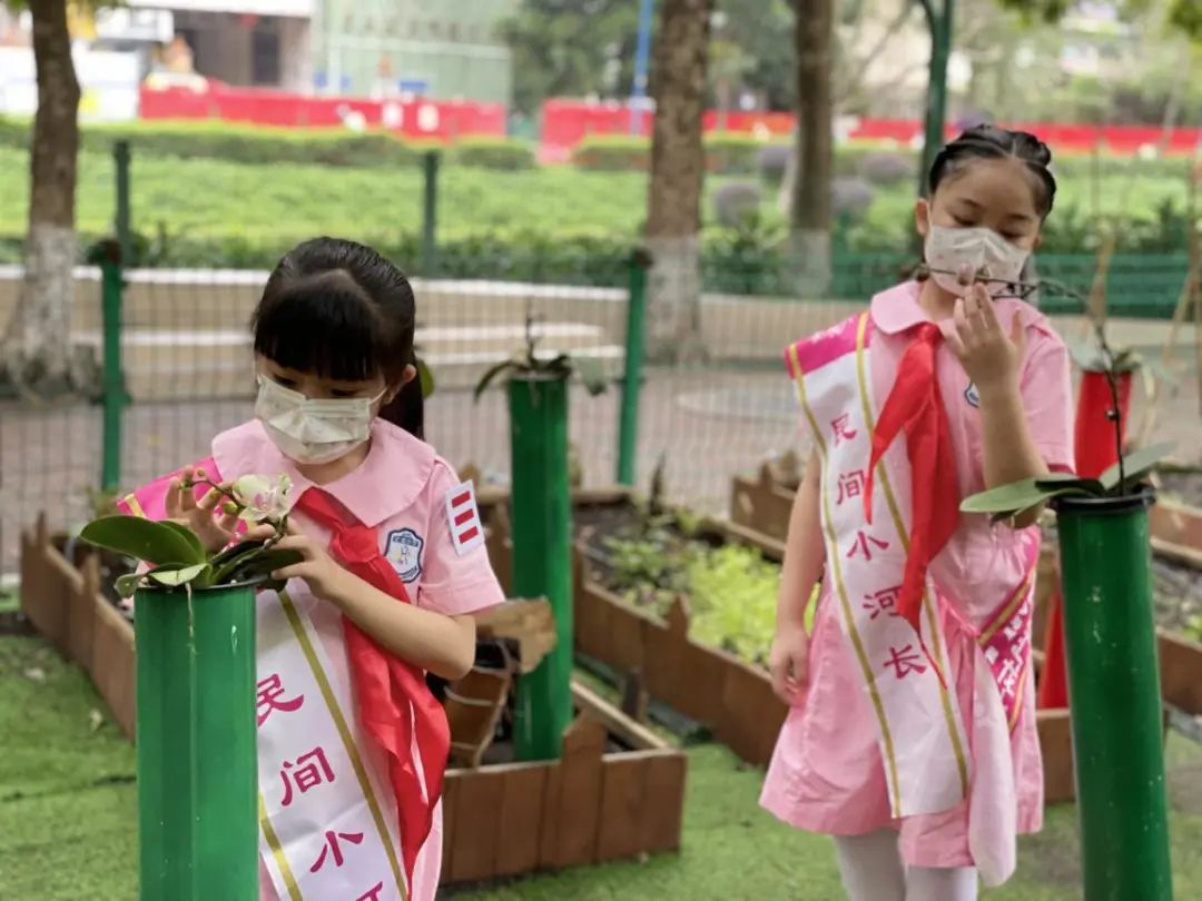 2021年起,学校还在驷马涌水岸边打造“生态共建基地”,驷马涌岸边复种兰花,为打造兰花主题的驷马涌碧道作出贡献。返校后,小河长们第一时间直奔心心念念的红领巾生态共建基地,打扫落叶、拔除杂草、认真观察并记录植物的生长状态。