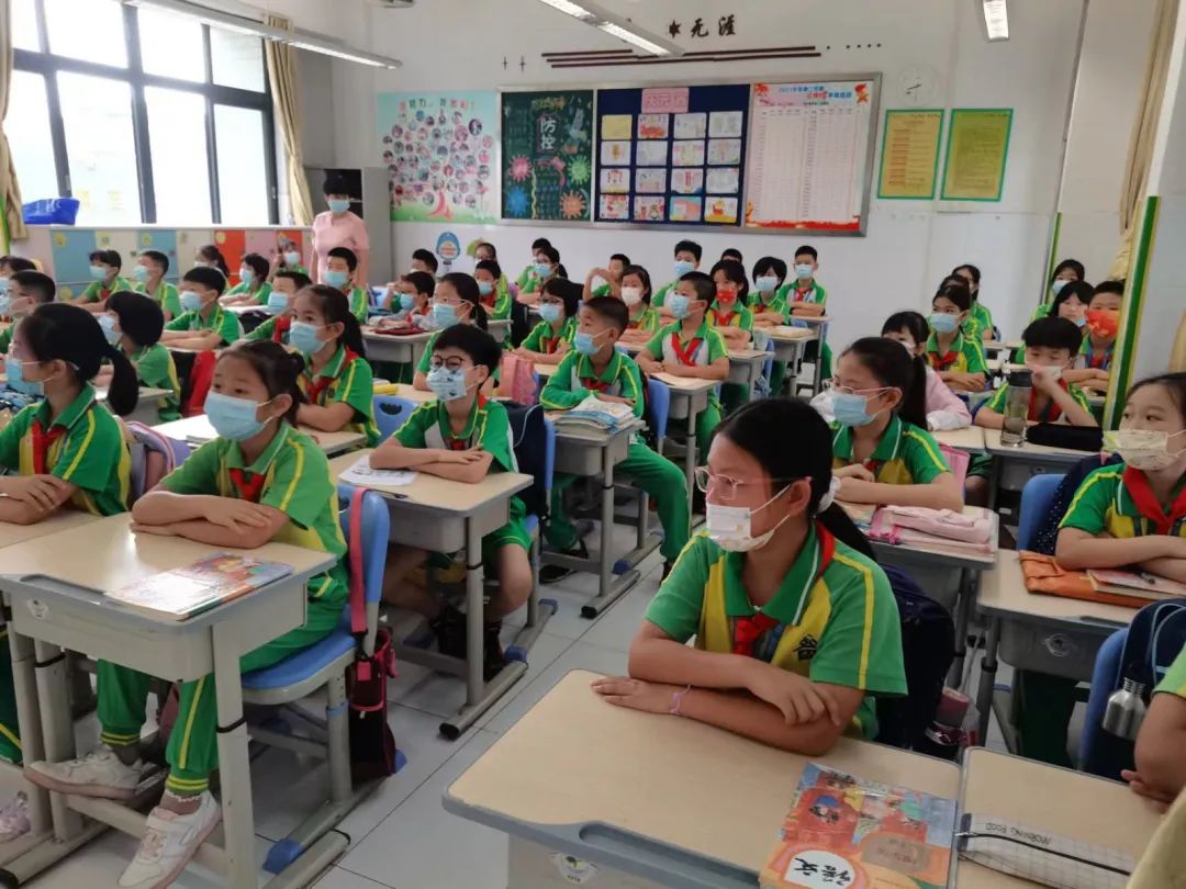 回到学校上第一课的市桥新世纪小学的孩子们。