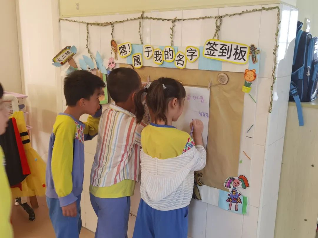 返校后的小朋友们迫不及待地在签到板写下自己的名字。