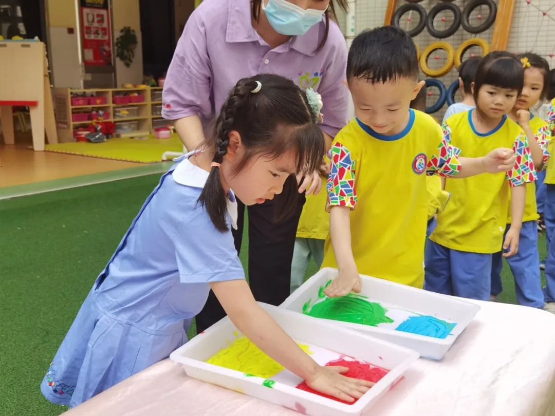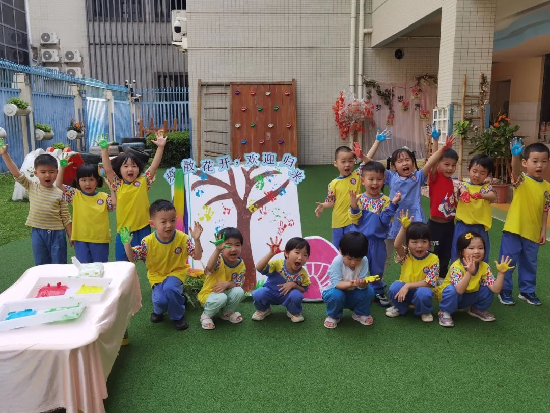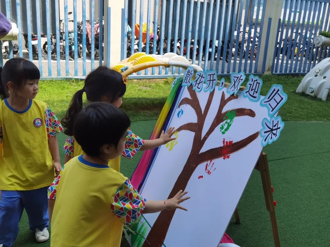桥南可逸江畔幼儿园还组织孩子们在纸板上印上自己的手印,花足心思,仪式感满满!