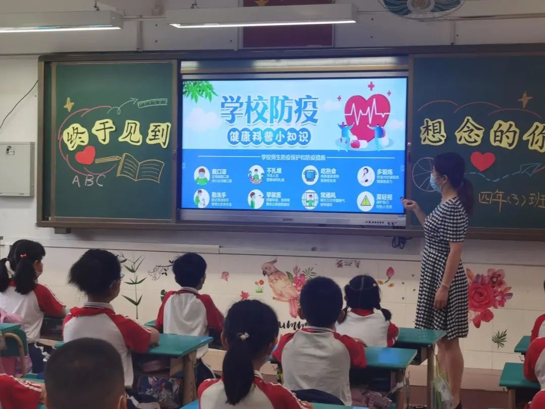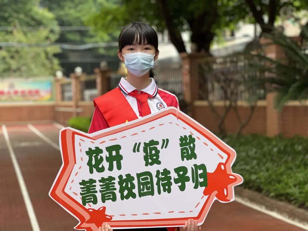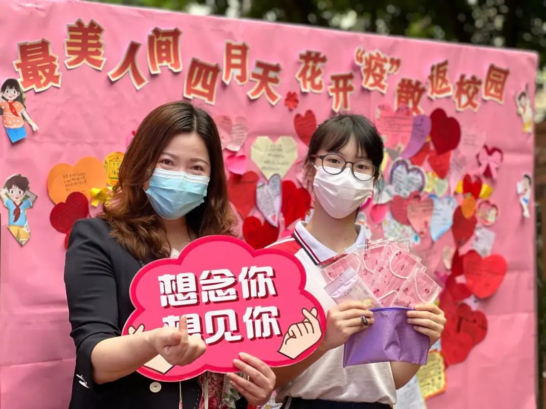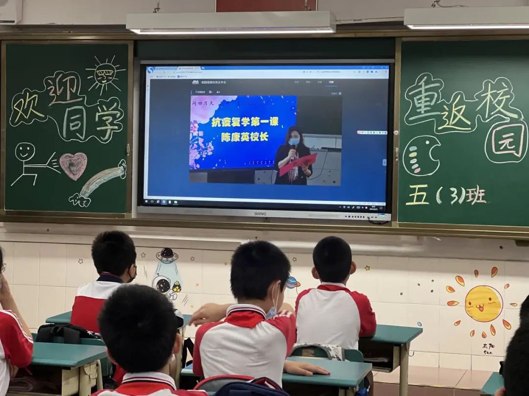 为了迎接同学们重回校园,老师提前打扫卫生,用心布置了课室,用满满的爱欢迎学生的归来。校方教师更精心准备不同主题的复学第一课,如广州暖心的抗疫故事、线上学习情况小结、居家日常趣事分享等,让同学们调整好状态,快速地进入校园学习当中。