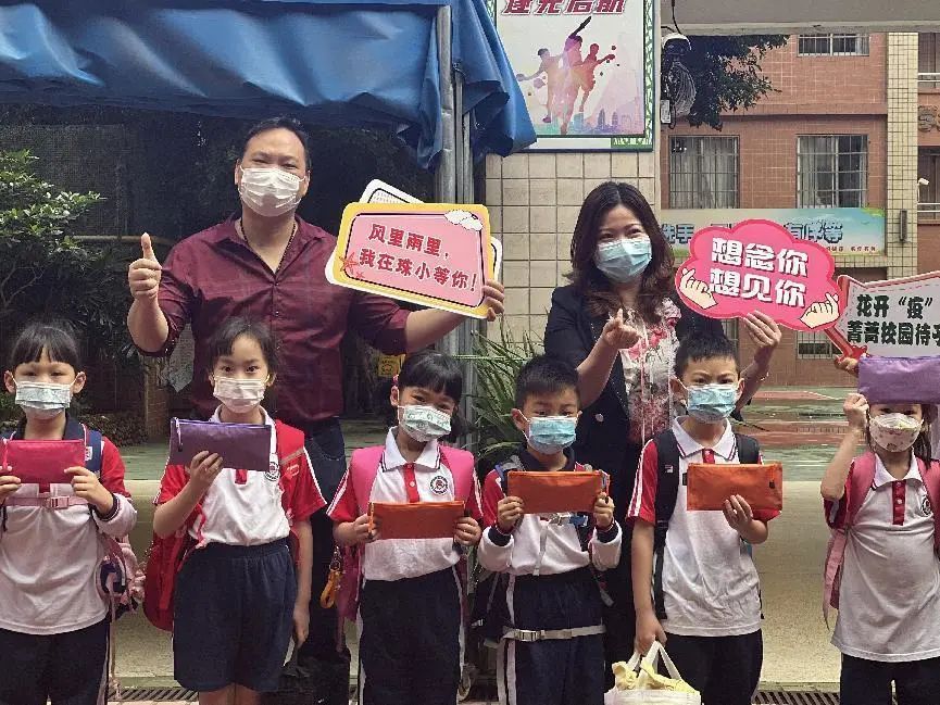 早上,学生们踏着轻松的脚步走进校园。一进入校门,就看到精神抖擞的大队委手持欢迎牌在迎接同学们,学校的领导班子也亲切地送上校方特意准备的防疫礼包,希望孩子们平安健康。收到防疫礼包的少先队员纷纷敬上队礼,向校长表达最真挚的感谢。