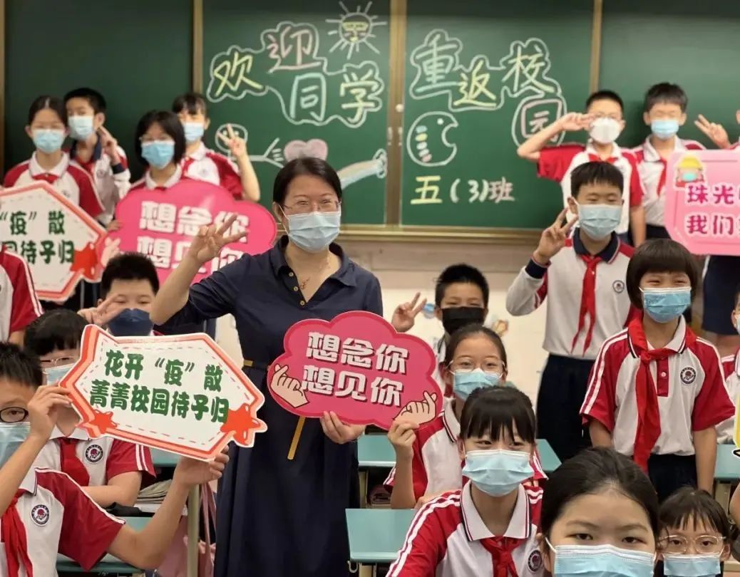 4月25日,广州市小学有序恢复线下教学。珠光路小学的孩子们带着激动的心情、喜悦的笑容回到校园,和敬爱的老师、亲爱的同学重启美好的校园生活。
